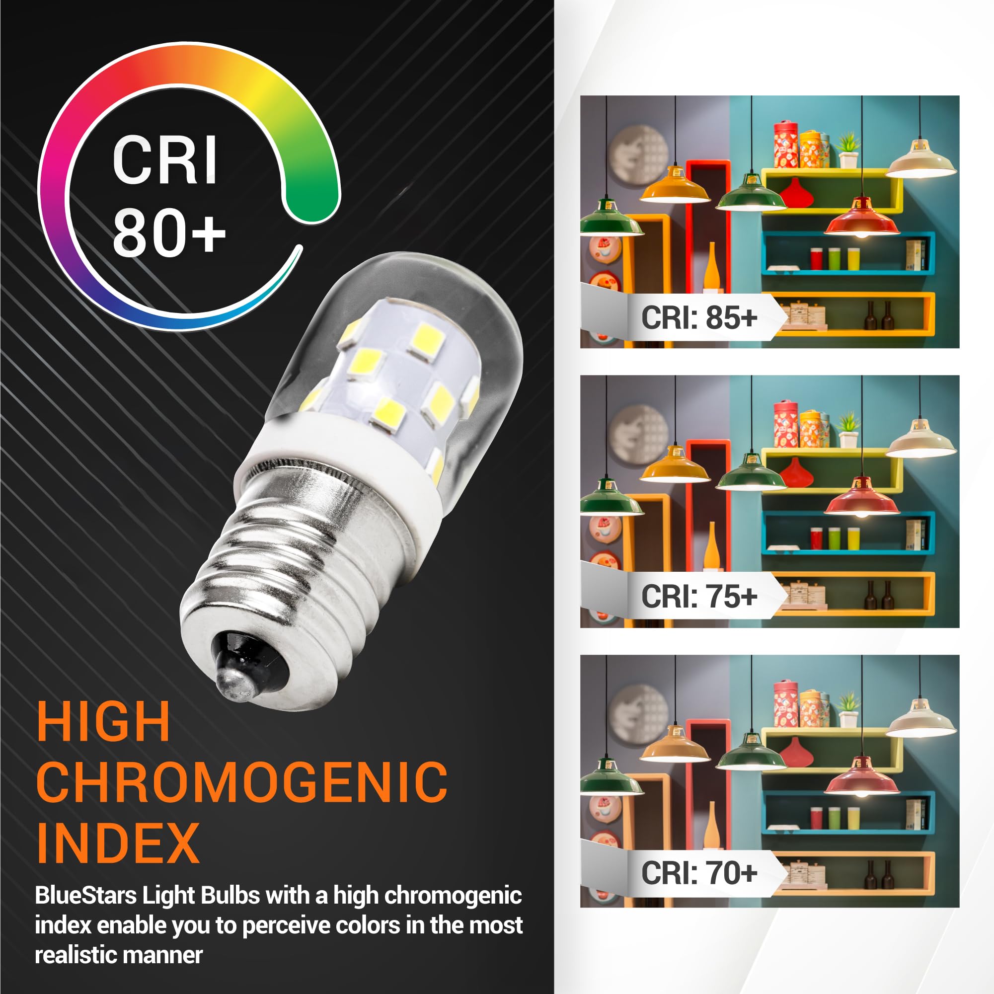 Easy to install & Wide use: BlueStars 8206232A LED Light Bulb is compatible with an E17 American standard base, it can be easily integrated into any standard E17 lighting fixture. Ideal for homes, offices, and other commercial spaces. Perfect for replacing bulbs in your Refrigerator, Microwave, Oven, or Range Hood, this dynamic lighting solution will make your food look absolutely delectable.