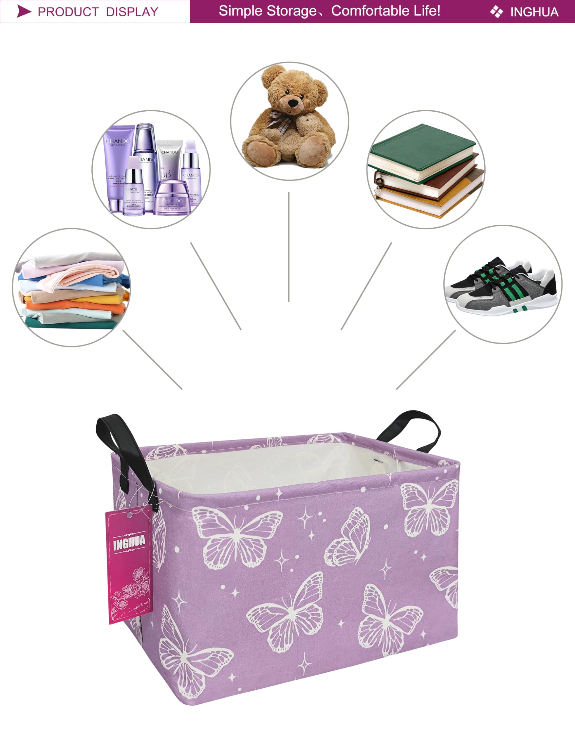 Multiple uses: you can use it to collect toys, dolls and story books for your kids,you can use it as a hamper to put your clothes, socks and shoes in, you can even use it as a shopping bag.