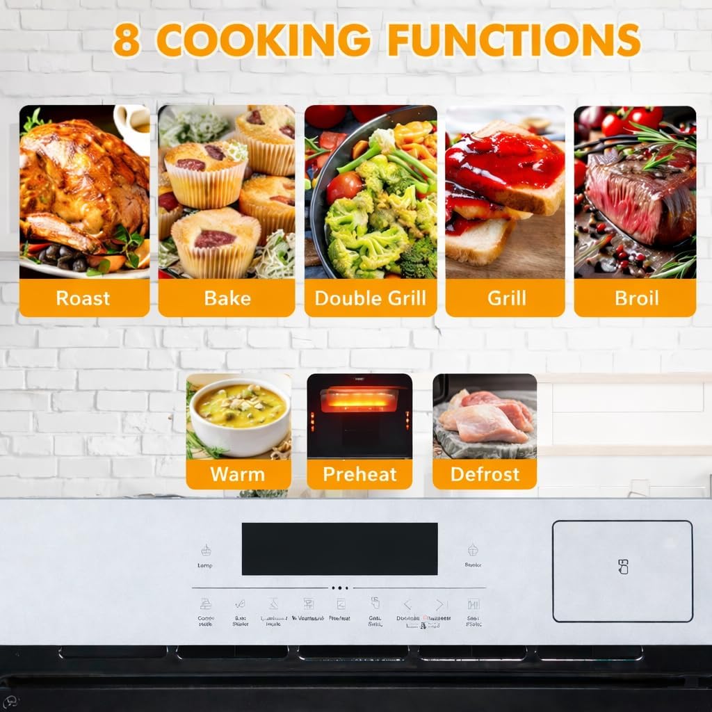 【8 Versatile Cooking Functions】 Equipped with 8 preset modes (Bake, Broil, Conv Bake, Conv Roast, Pizza, Keep Warm, Air Fry, Steam), this all-in-one oven simplifies cooking. No more recipe research—just select a mode/recipe for consistent results, ideal for busy commercial operations (catering/small restaurants) or home cooks. Stepless temperature adjustment (140-482℉: 140-230℉ for steam, 212-482℉ for bake) offers 1℉ precision, adapting to delicate pastries or heavy roasts.