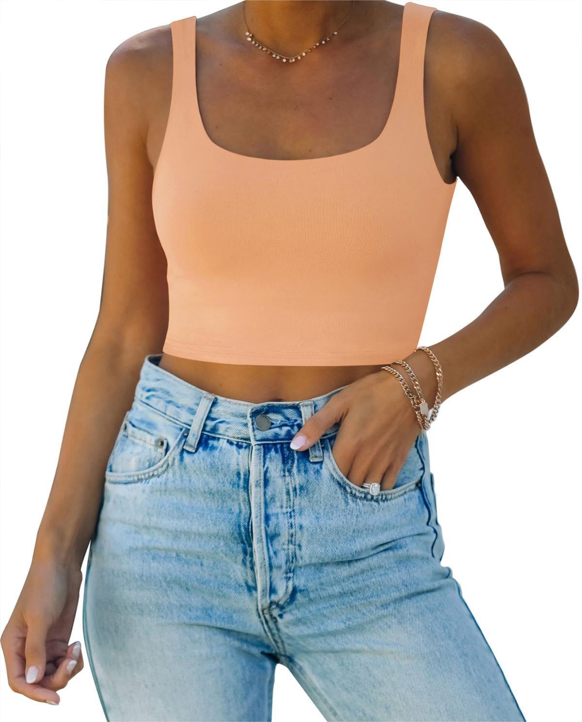 🌸Versatile,can be worn in many different ways!This square neck crop top for teen girls/women is basic and chic.Cute with yoga pants, joggers,skirts or high waist jeans!