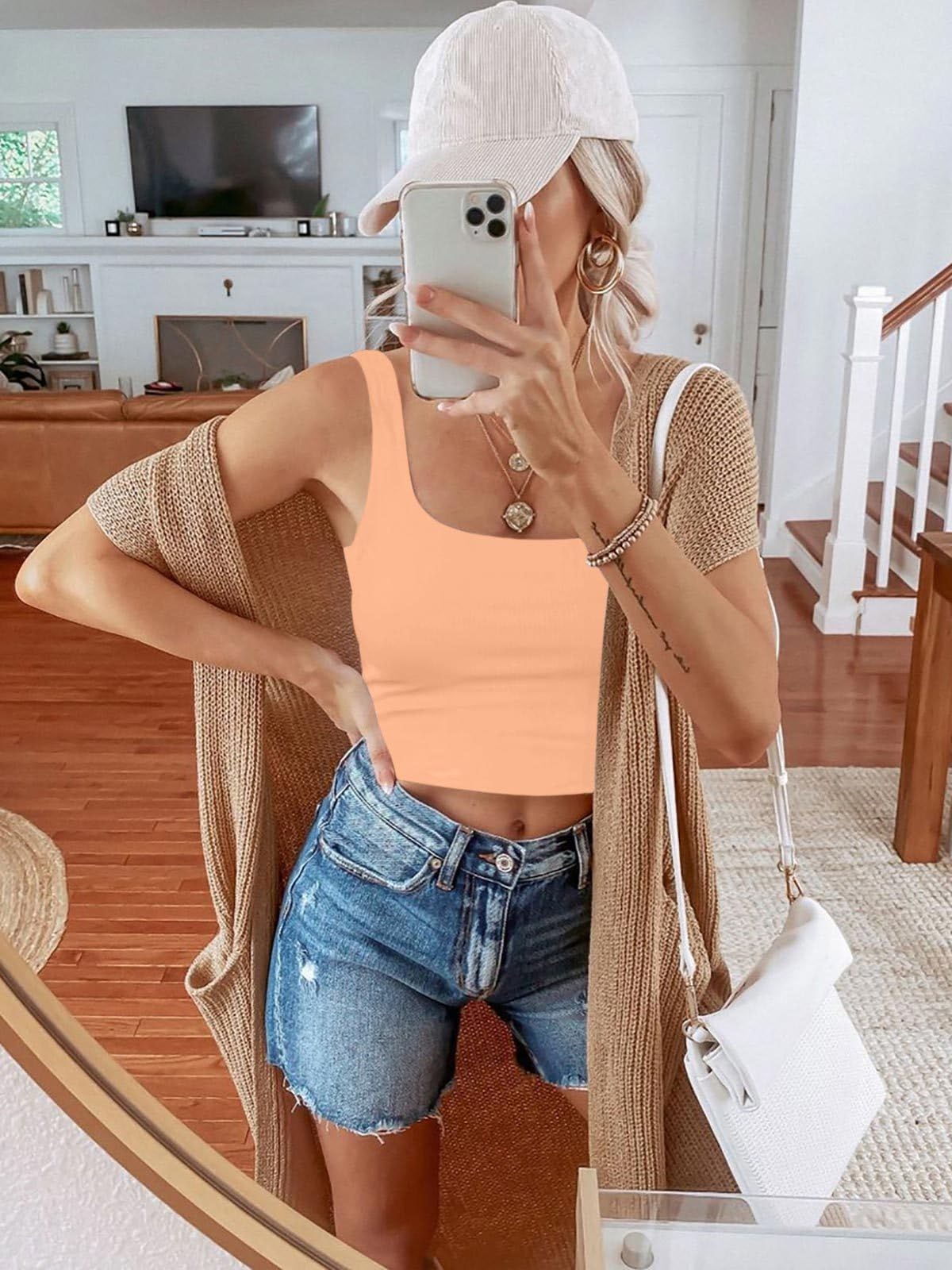 🌸Holds your girls in place so well you don't even need a bra! This seamless sexy crop top for women is double lined and snug to wear without a bra, just enjoy the comfort and freeness of this basic top.