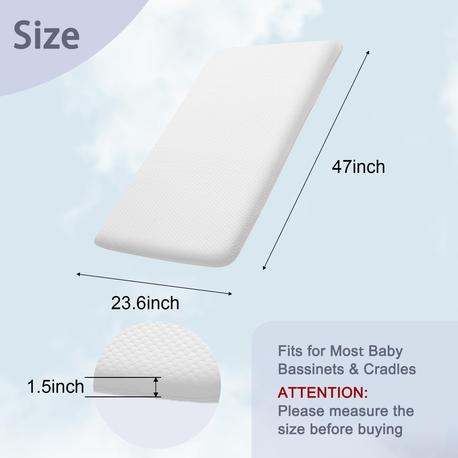 【Suitable for】This size baby bassinet mattress compatible with ADOVEL, BabyBond, ANGELBLISS and ELEMARA Bassinet Bedside Crib or other 47'' x 23.6'' size baby bassinet.