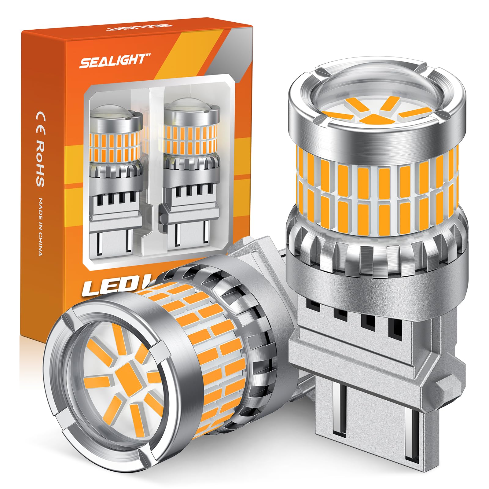 【Fits base】: Sealight led turn signal bulbs non-polarity design. Plug and play. Easy installation for 3157 3157K 3157NA 3157NAK 3157LL 3156NA 3156A 3156 3156K 3056 3057 3057K 3057LL 3155 3356 3357 3357K 3357KNA 3357LL 3457 3457-NA 3457K 3457NAK 3757AK 3757ALL 4057 4057LL 4057K 4114 4114LL 4114K 4157 4157LL 4157K 4157NA 4157NAK 5702A 5702AK 5702AK etc base.
