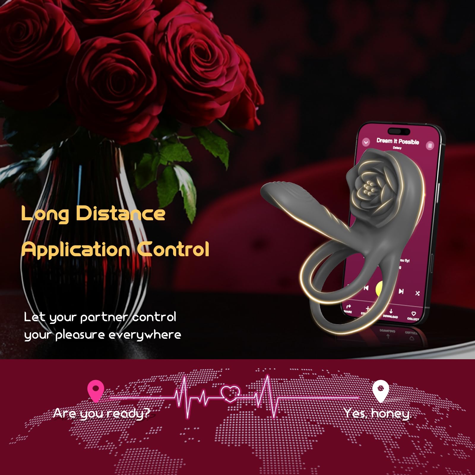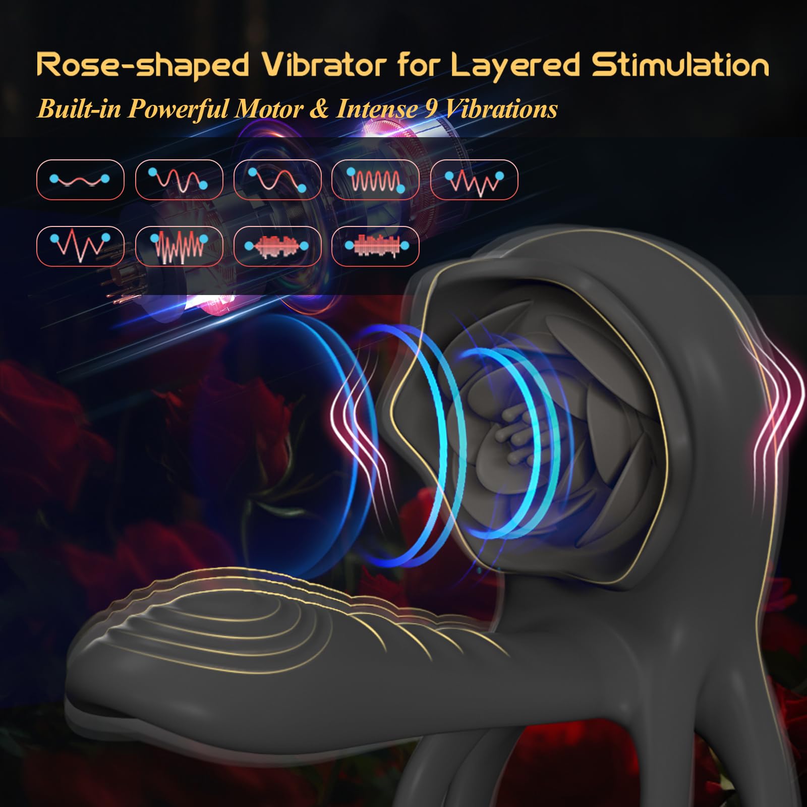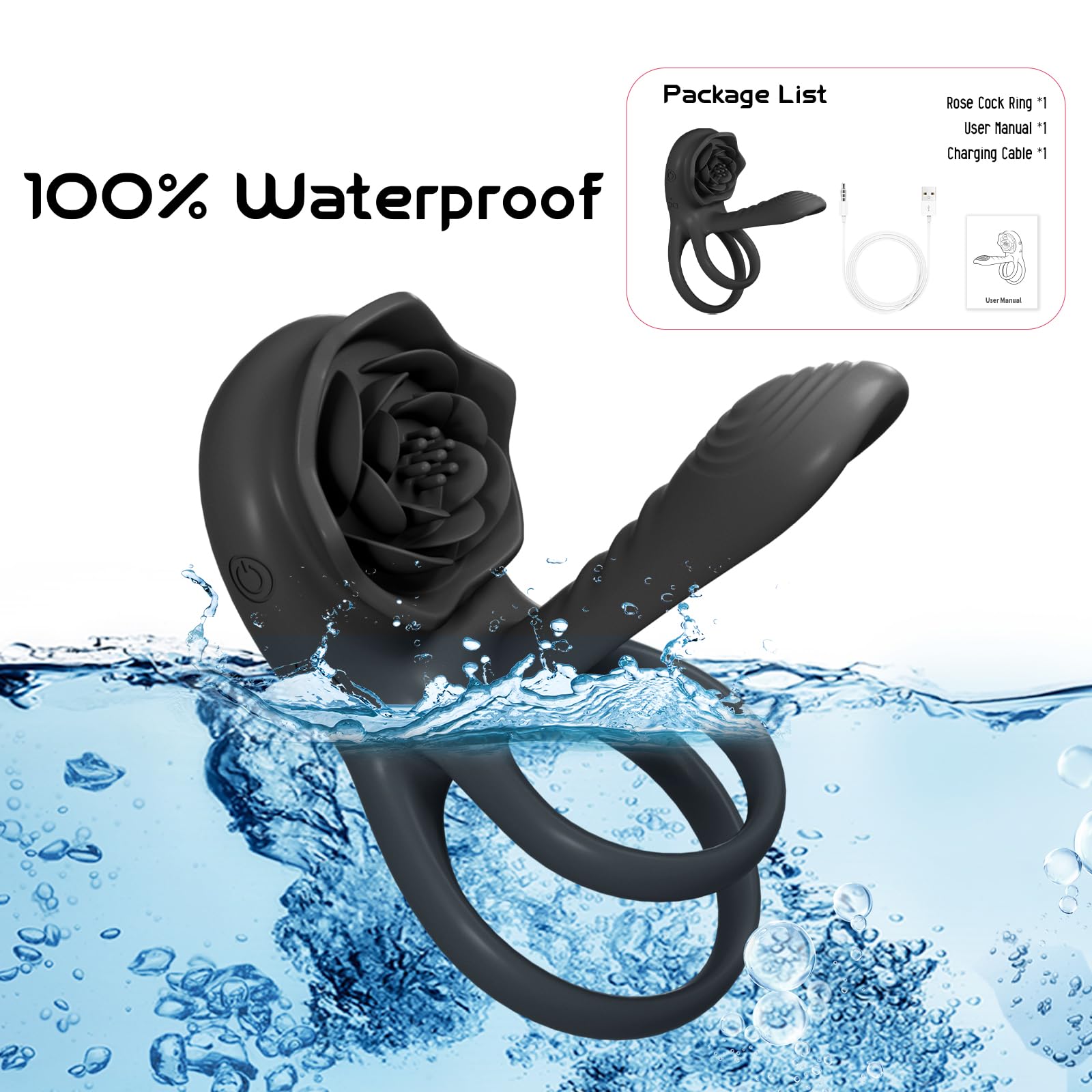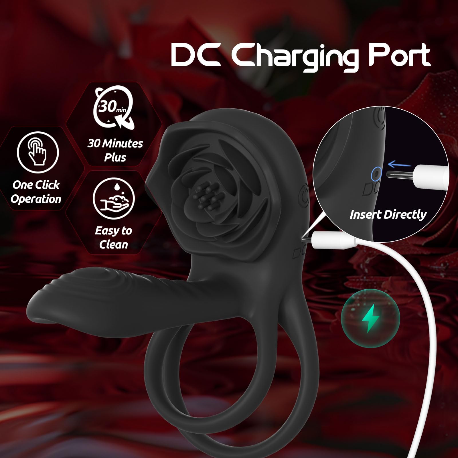 Synchronous Quartet Stimulus for Penis, Testicles, C Spot, and G Spot- Paired with 2 rings for firmness and constriction,the rose vibrator closely stimulates the C-spot. The front-end vibrator fits the penis and unleashes intense vibration to G spot!