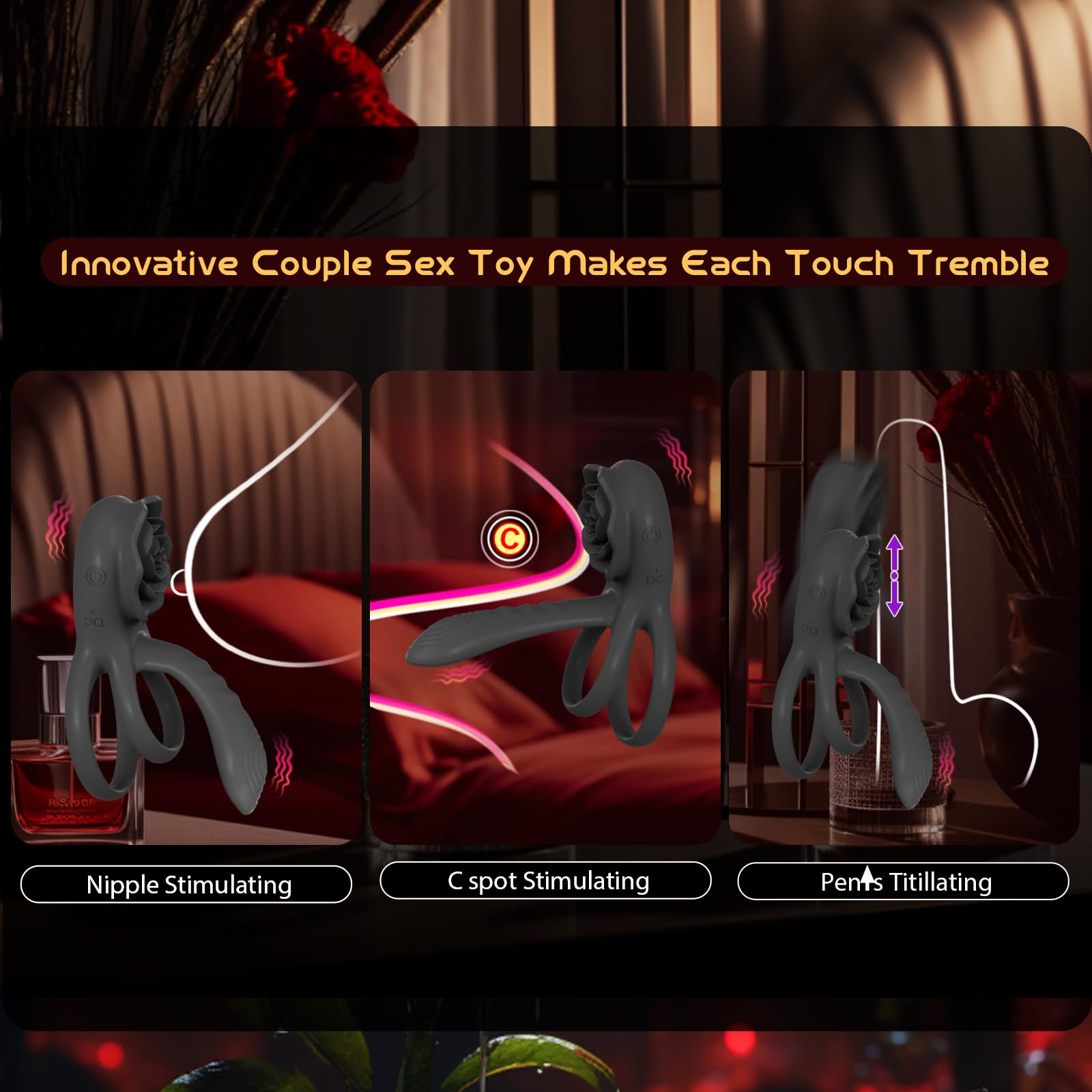 All-in-one Couple Vibrator, Multiple Benefits- Combined with the silicone cock ring, thick penis sleeve, and multiple sensitive stimulation womens sex toys, this all-encompassing women sex toy offers an all-in-one solution for various sex play ways.