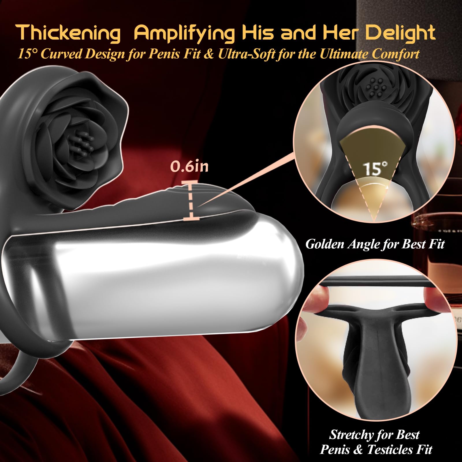 Thickening His Penis, Amplifying His and Her Delight- The 15°curved design in the front-end vibrator brings the fit for penis and is ultra-soft for ultimate comfort for both. Enjoy his thickening penis and enter a new level of sex pleasure.