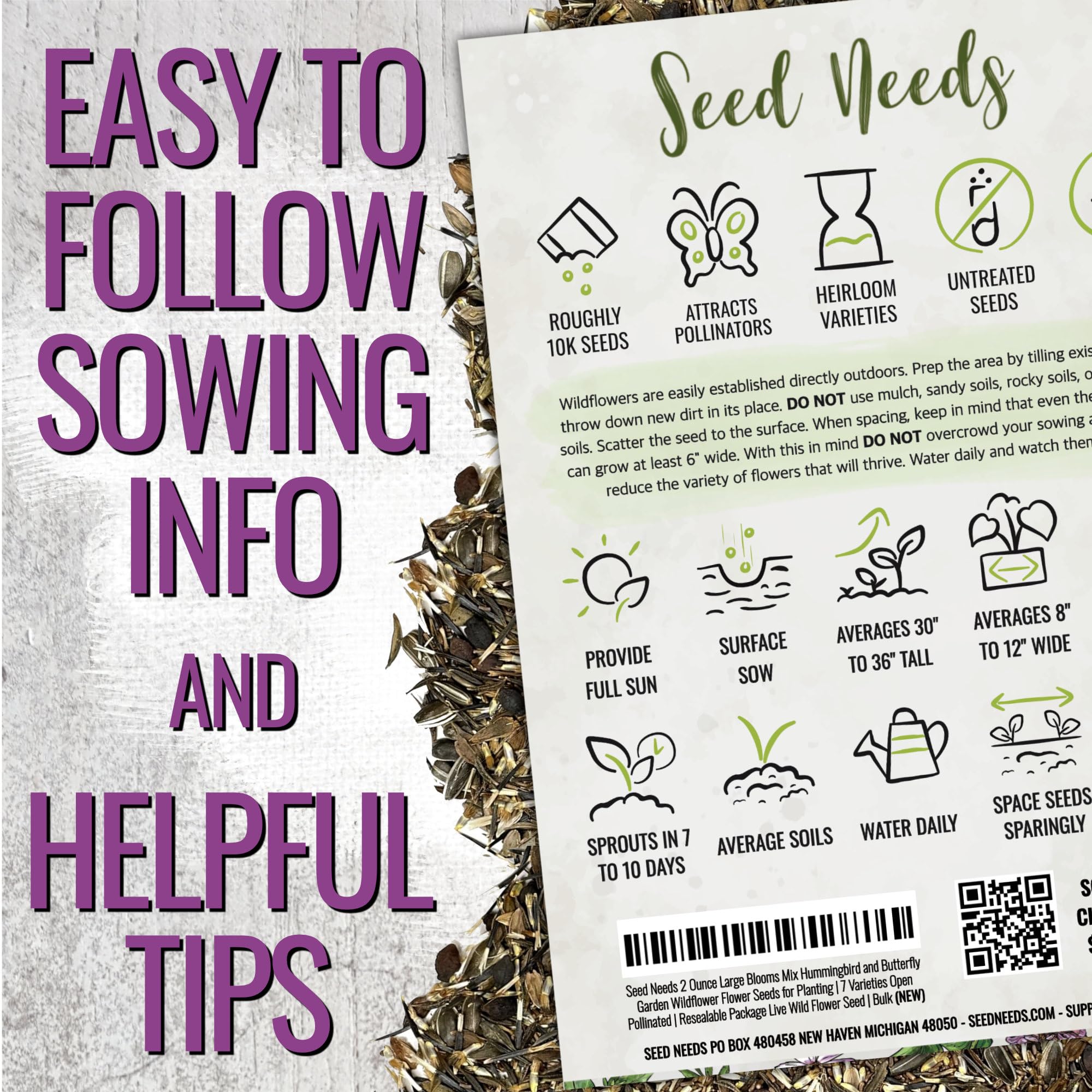 Quantity: Seed Needs offers generous quantities. You can share with friends and family, or you can save the extra seeds until the following season, if properly stored.