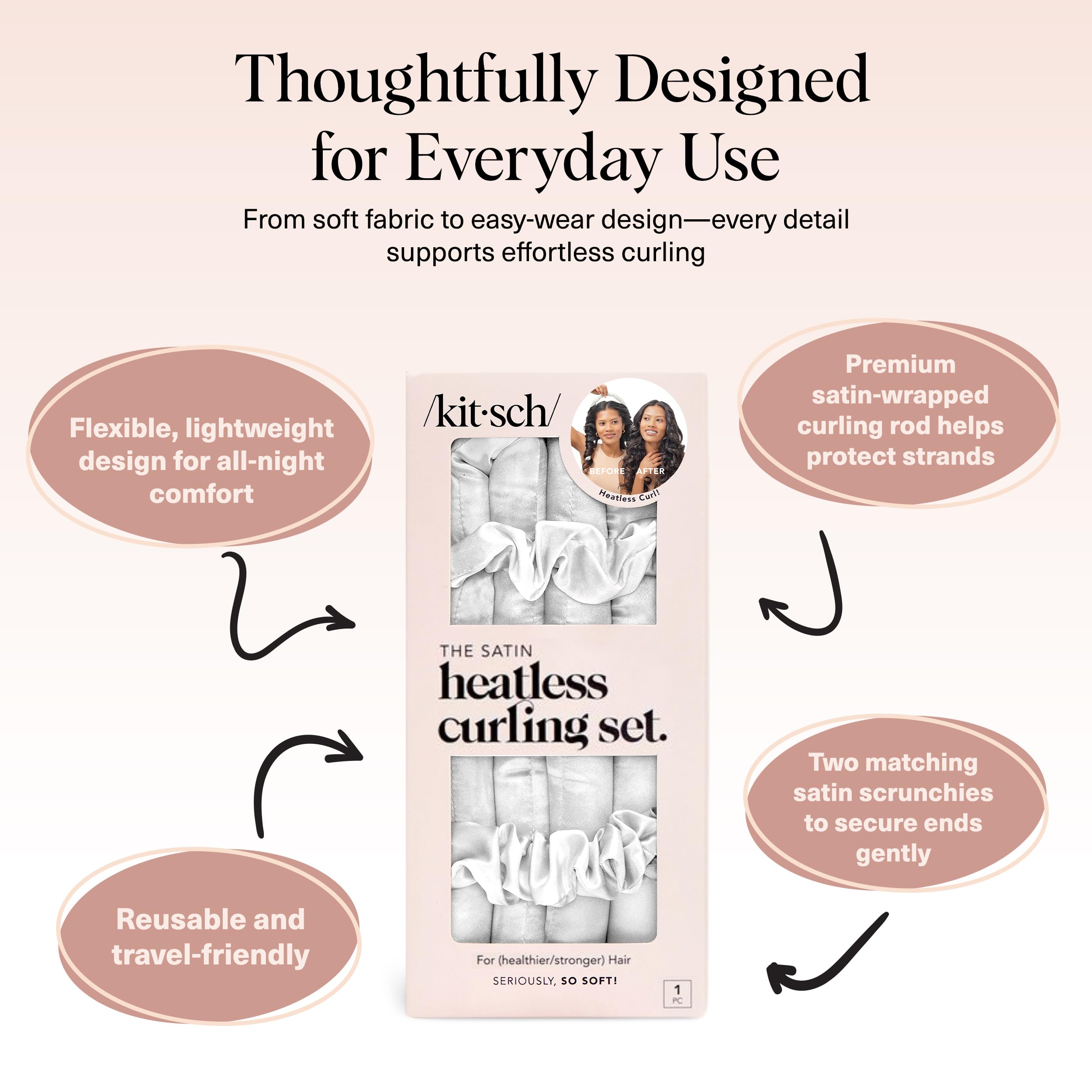 EASY & DAMAGE-FREE STYLING – Skip hot tools and achieve beautiful heatless curls overnight with the Kitsch satin heatless curling set. Designed for all hair types, this heatless hair curler helps you get salon-worthy results without frizz, breakage, or heat damage.