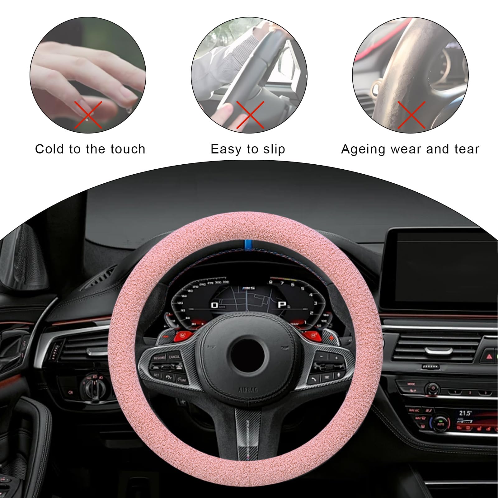 【Soft & Comfortable】: The plush fleece is very soft to the touch and gives you a very comfortable texture. Especially in winter, when you grasp the furry steering wheel, it can give you a warm feeling, making the journey more enjoyable to bring a pleasant driving experience.