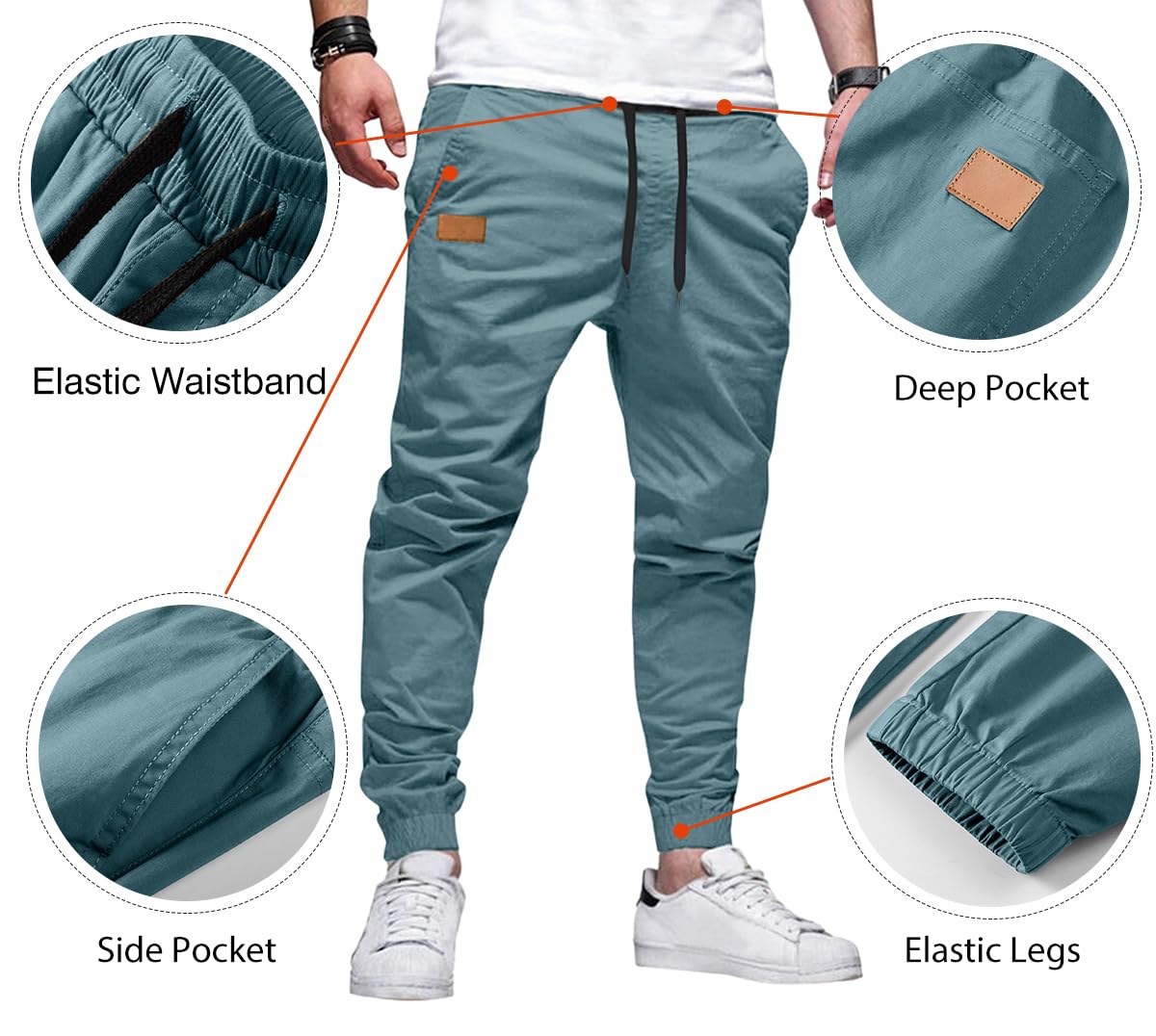 Twill elastic and comfortable Breathable material: 94%Cotton, 6%Elastane, more breathable and softer, twill casual pants made of highly elastic materials, providing great flexibility and sports comfort in daily life.