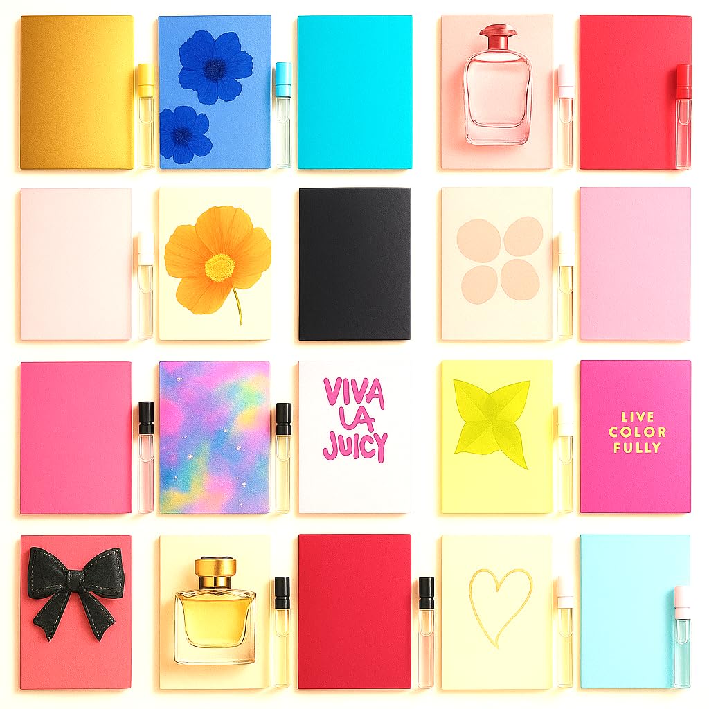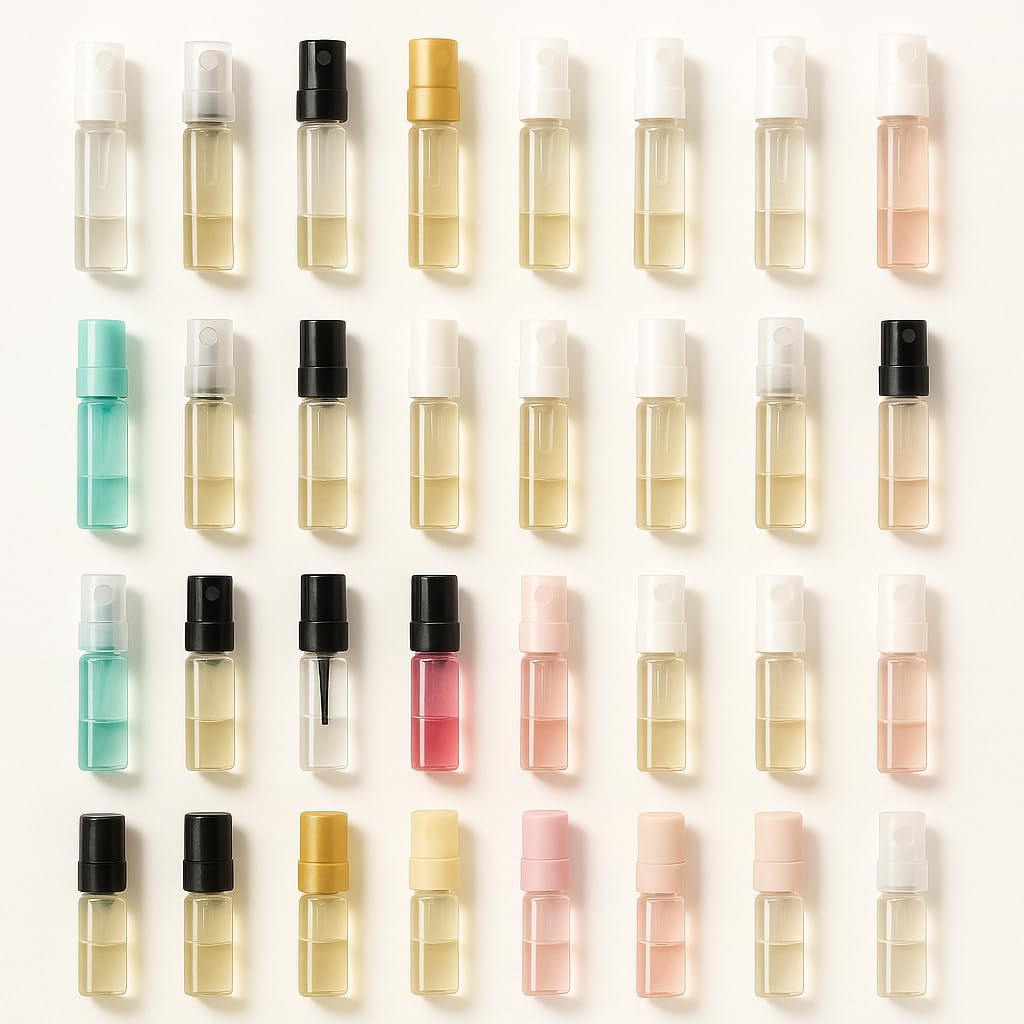 Enjoy a curated selection of premium designer perfume samples. Each vial offers floral, fruity, sweet, fresh, and warm scent notes.