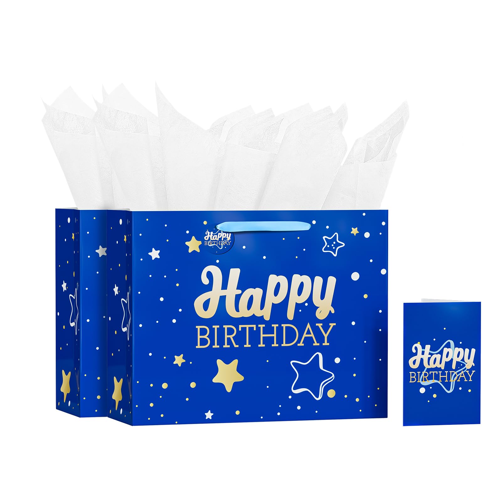 【Birthday Gift Bag Medium】The bag pattern is original and aesthetically unique. A blue background with star elements creates a starry sky effect, and the phrase "Happy BIRTHDAY" is printed on the bag, making it perfect for birthday parties. It's a great choice for yourself or to gift to family, friends, or colleagues.
