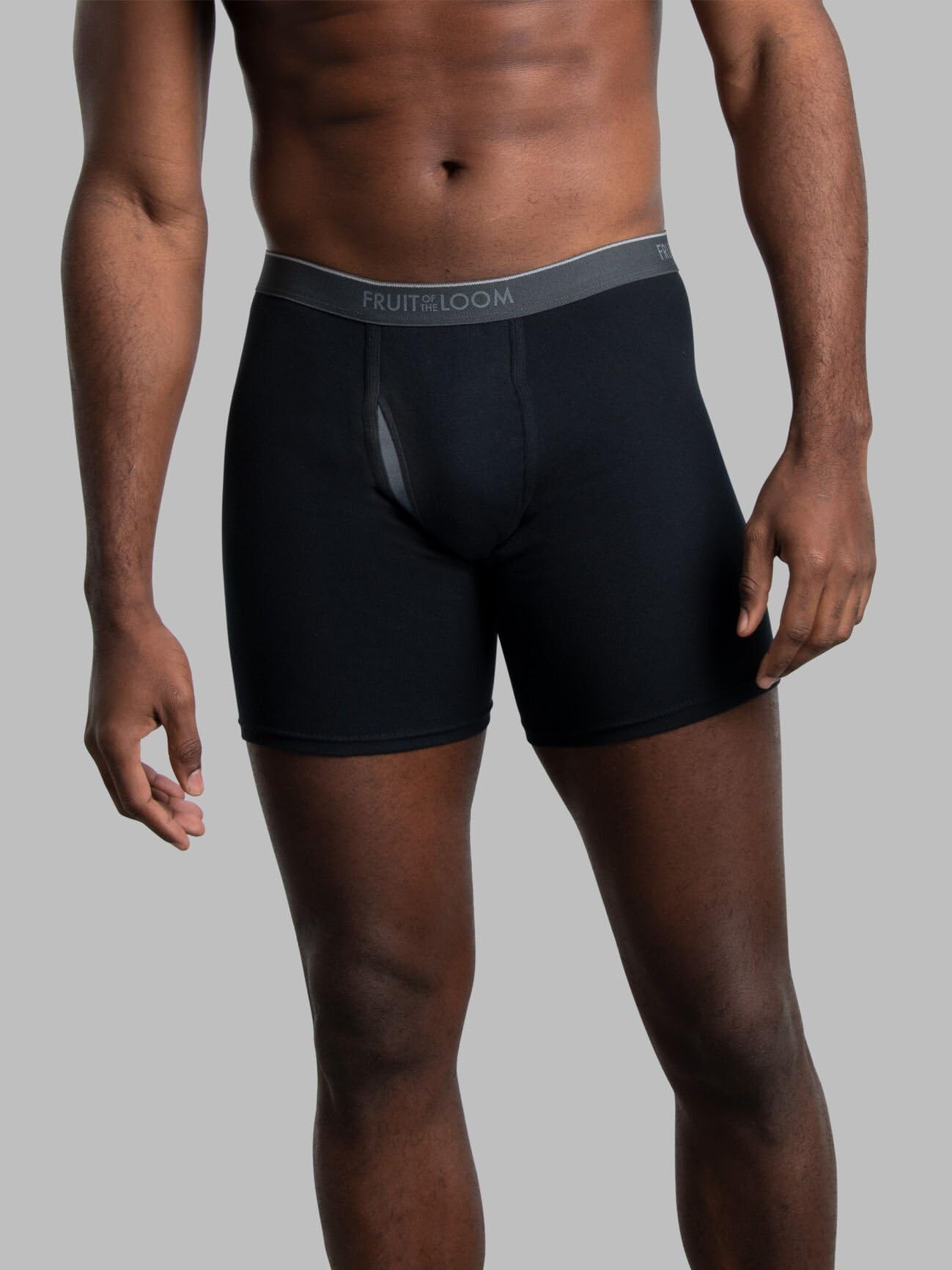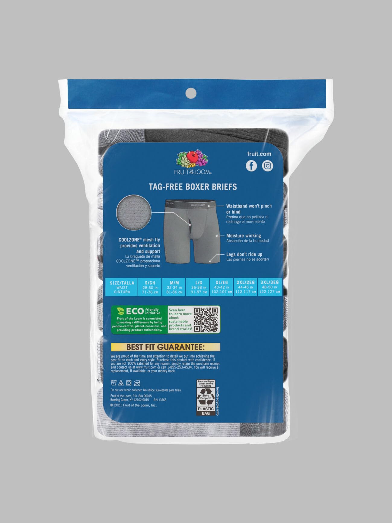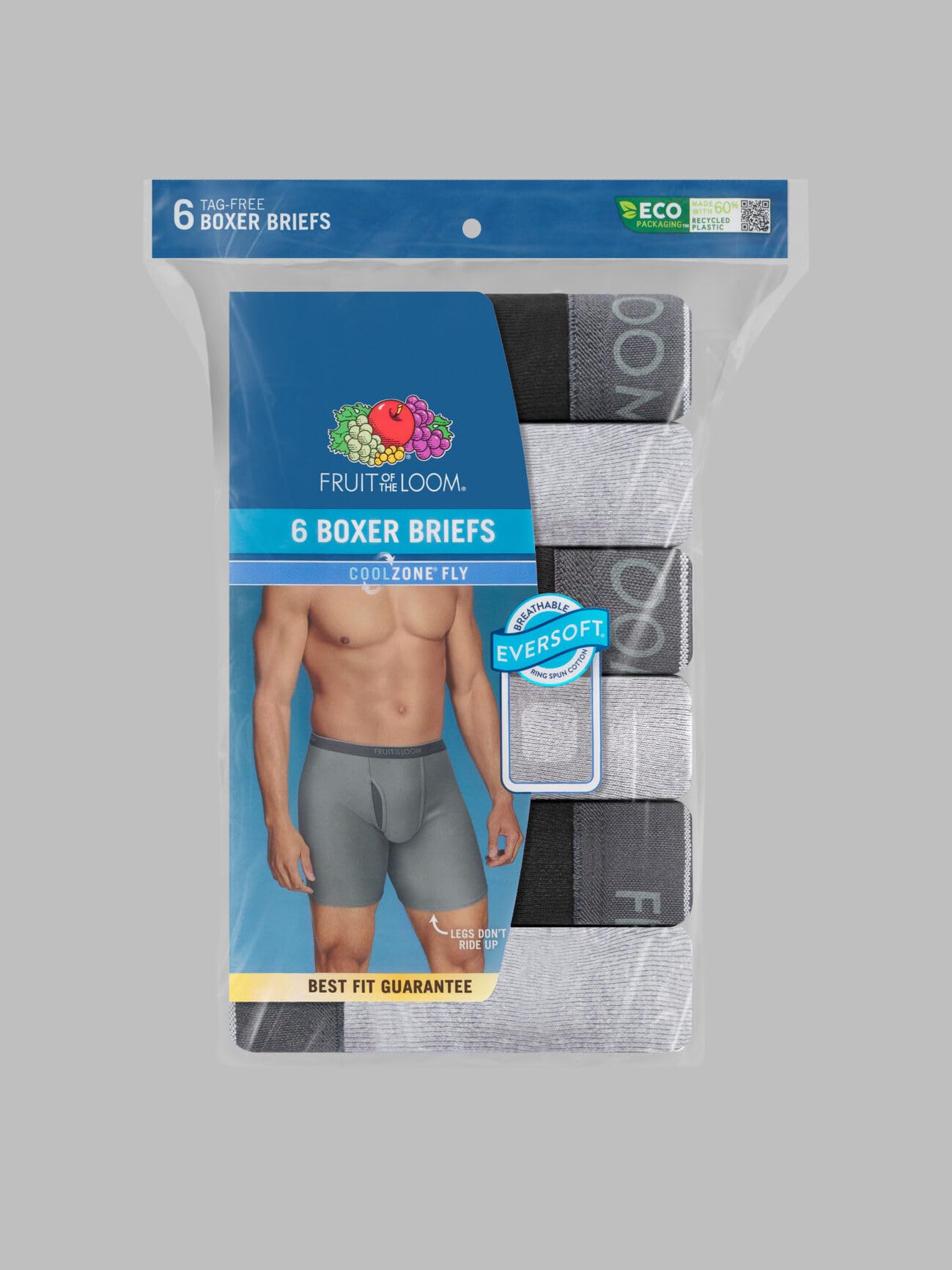 Description The Fruit of the Loom® cotton boxer briefs are better than ever! We've added EverSoft® fabric that provides premium softness wash after wash. This collection of black and grey CoolZone® men's boxer briefs are designed with a mesh fly that provides ventilation and support right where you need it most. With legs that don't ride up, and strategically placed breathable mesh, our CoolZone® boxer briefs will keep you cool and comfortable all day. Each pair is carefully crafted and includes moisture wicking benefits designed to help keep you dry and fresh.
