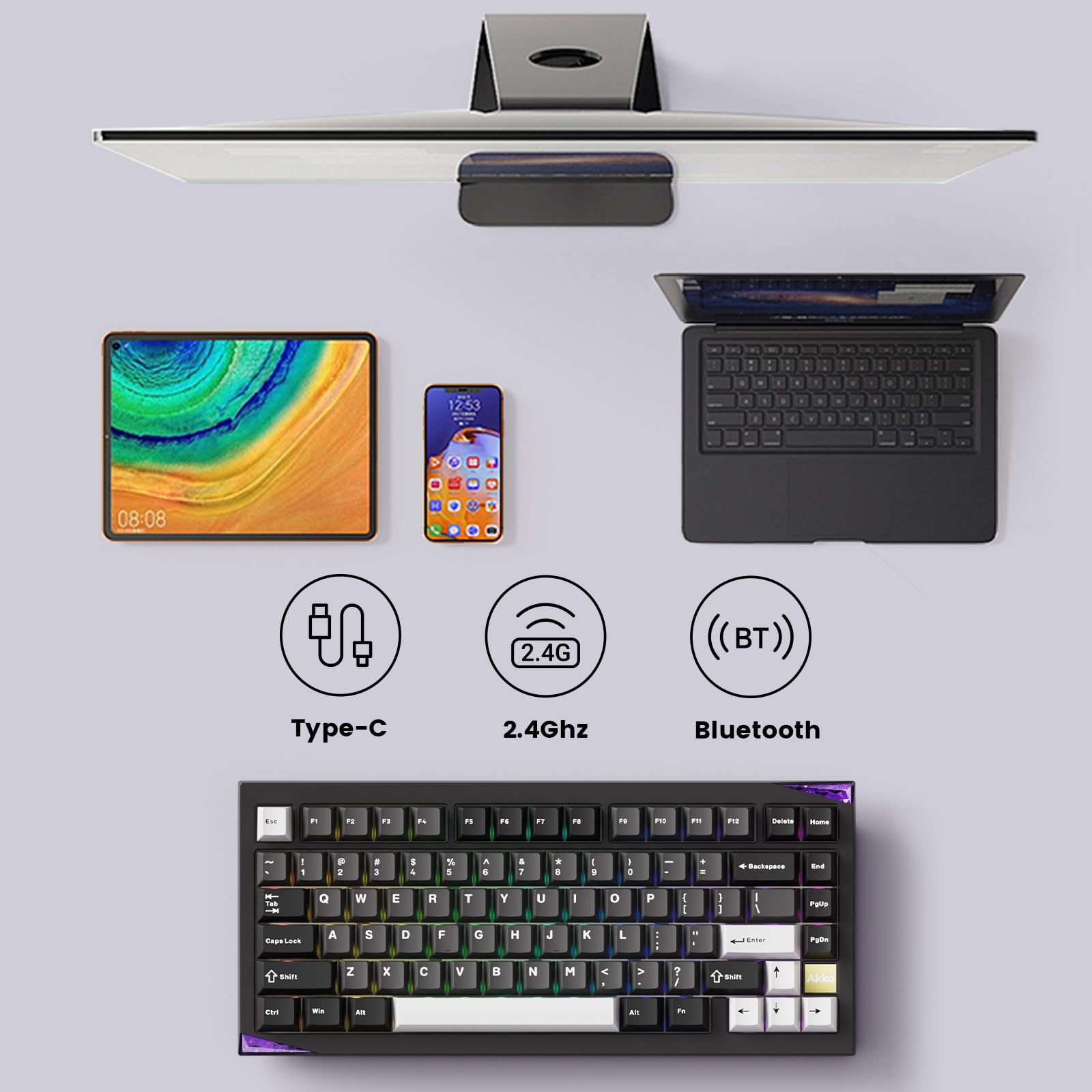 Multi-device& Wireless: Gem 01 VIA mechanical keyboard can be connected to multiple devices through Bluetooth, multi-host 2.4Ghz (with a receiver), and wired Type-C modes with easy switch. Comes with a large 8000mAh battery, Gem 01 VIA gaming keyboard offers strong flexibility in workplace for users with multi-devices computers, tablets and mobile devices