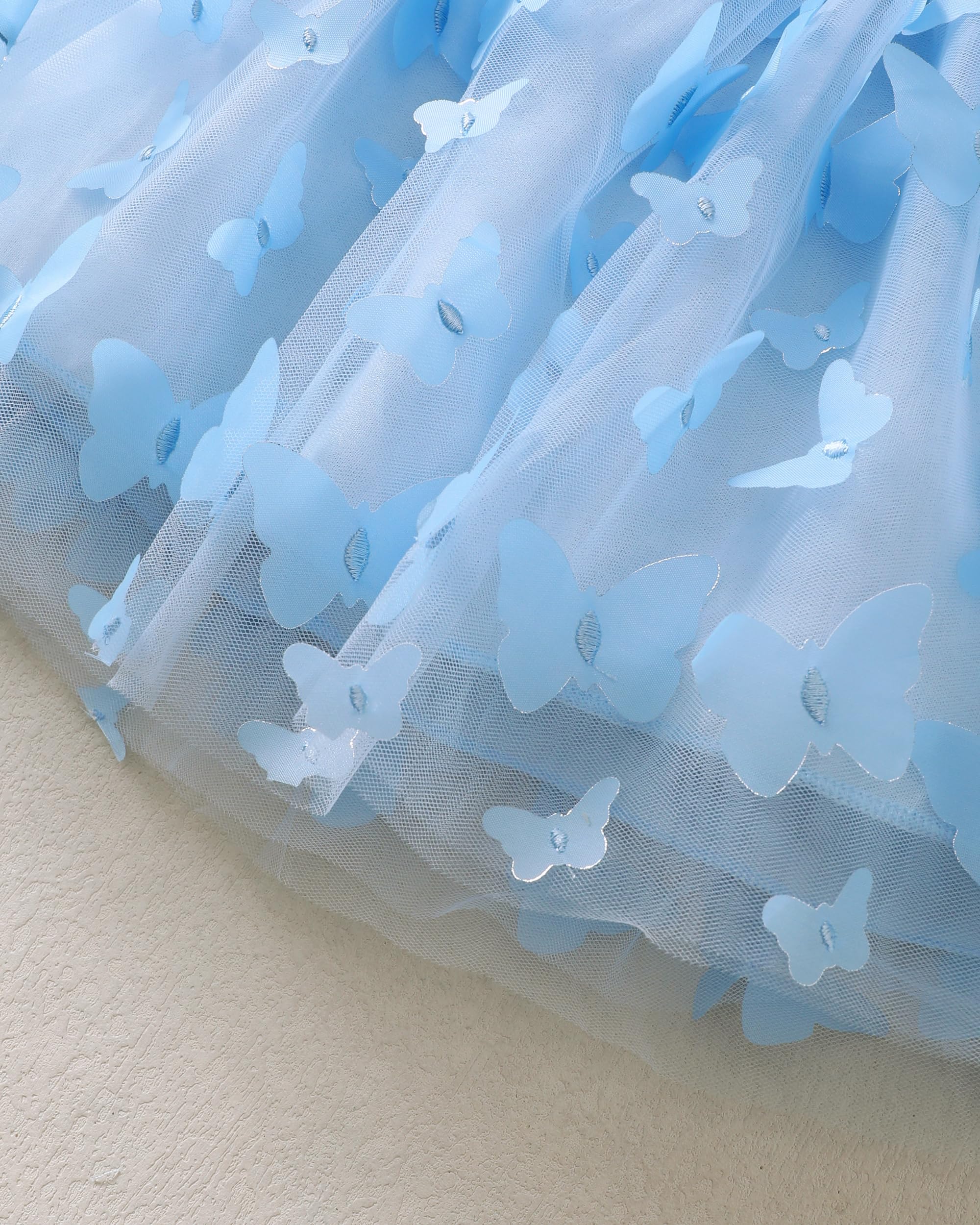 【Elegant Design for a Magical Look】This dress combines classic elegance with playful details, featuring a tulle tutu skirt, lace accents, butterfly appliques, flower headband, and a large bowknot, an untied headband accessory that requires tying, allowing for a customizable fit.The sleeveless sundress style is perfect for warmer days, while the boho-inspired flower headband adds a touch of whimsy. Available in pastel colors like pink/blue/purple sequin/white lace/black sequin/creamy white lace.