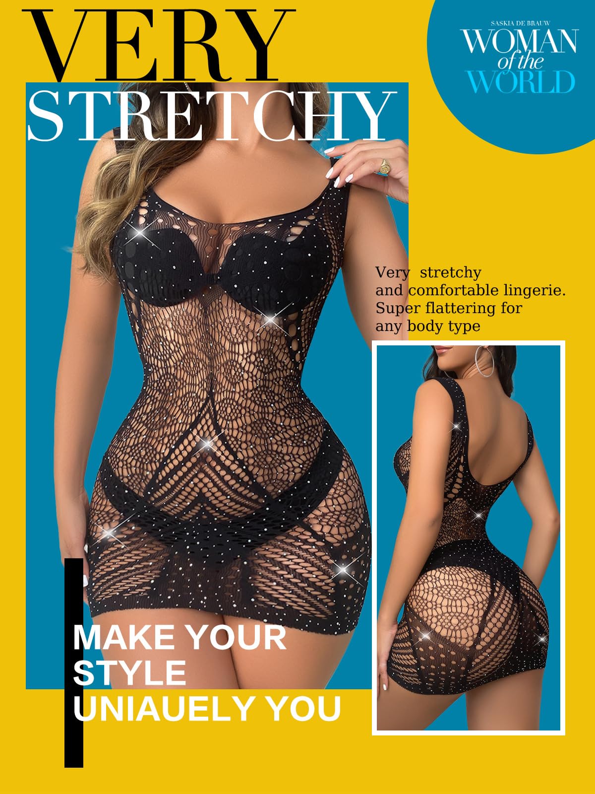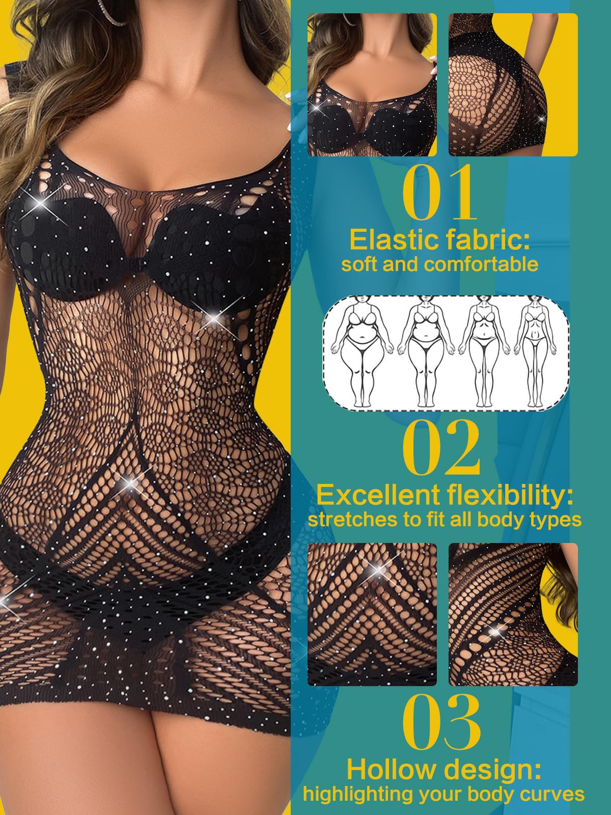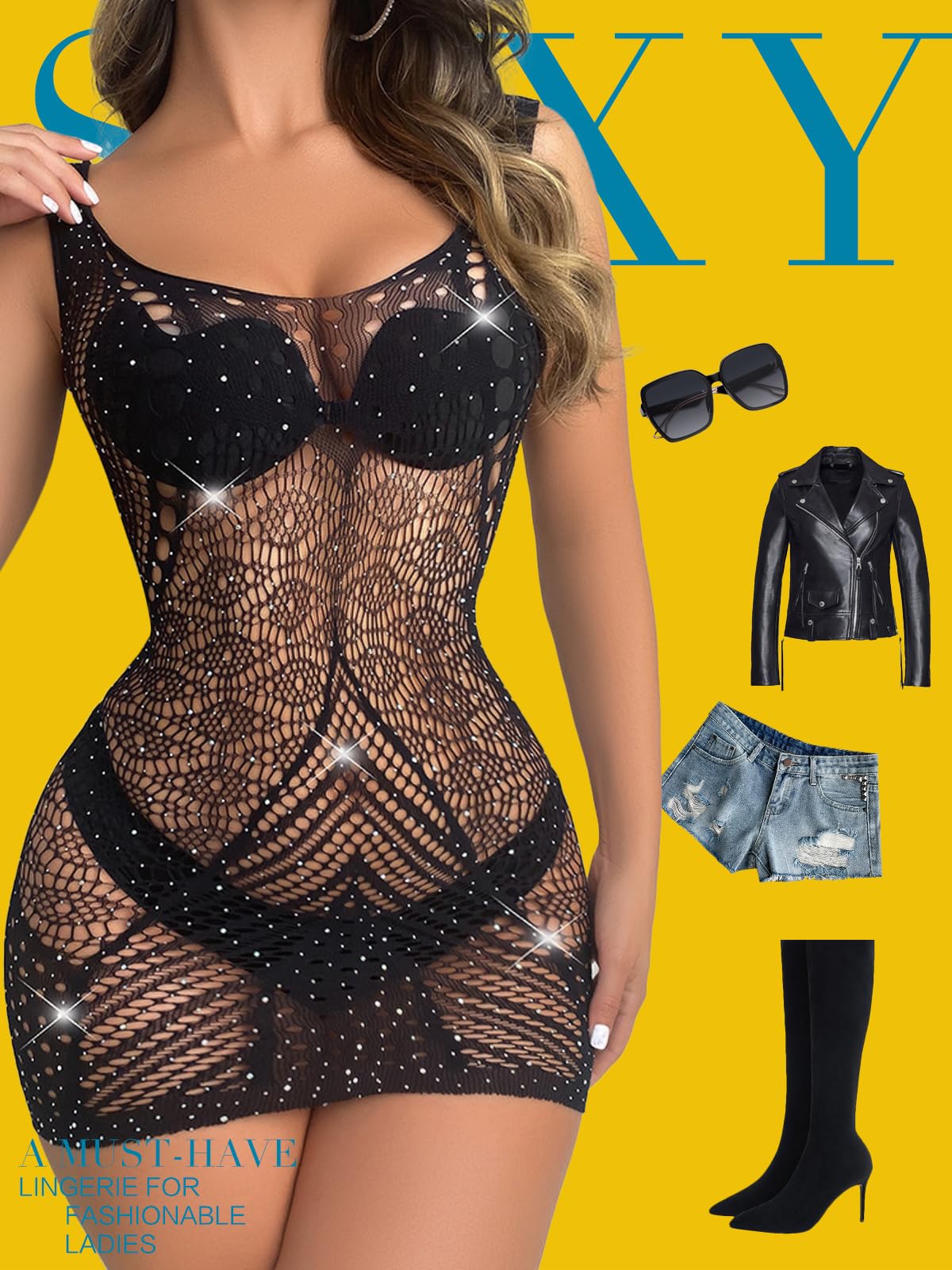 Sultry Style: This see-through fishnet babydoll dress features delicate straps and sheer mesh material that looks sexy yet comfortable for intimate moments or nights on the town.