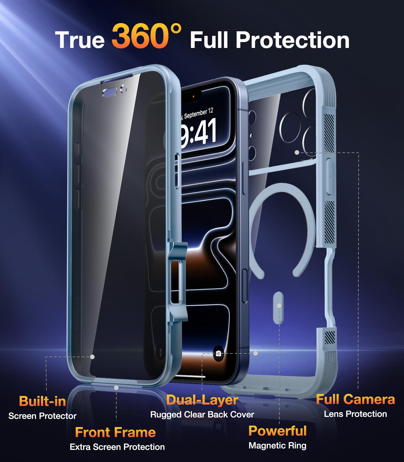 【Fit All Magnet Accessories】 Built in 2025 upgraded generation magnet ring, locking and compatible with magsafe accessories, wireless charging is faster, easier, and safer. Works 100% with wireless charging pad, don't need to remove the case.
