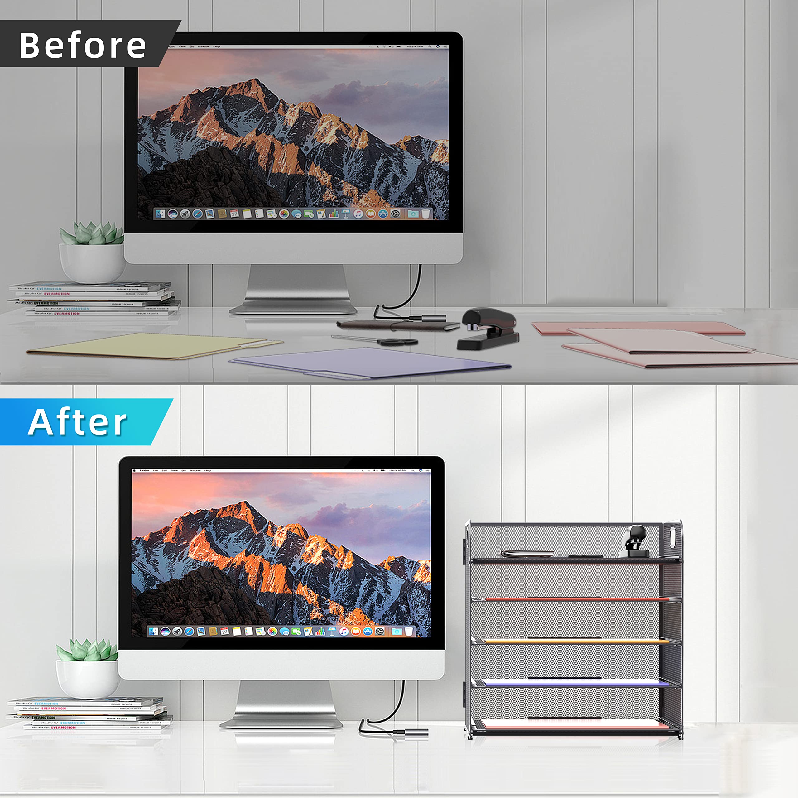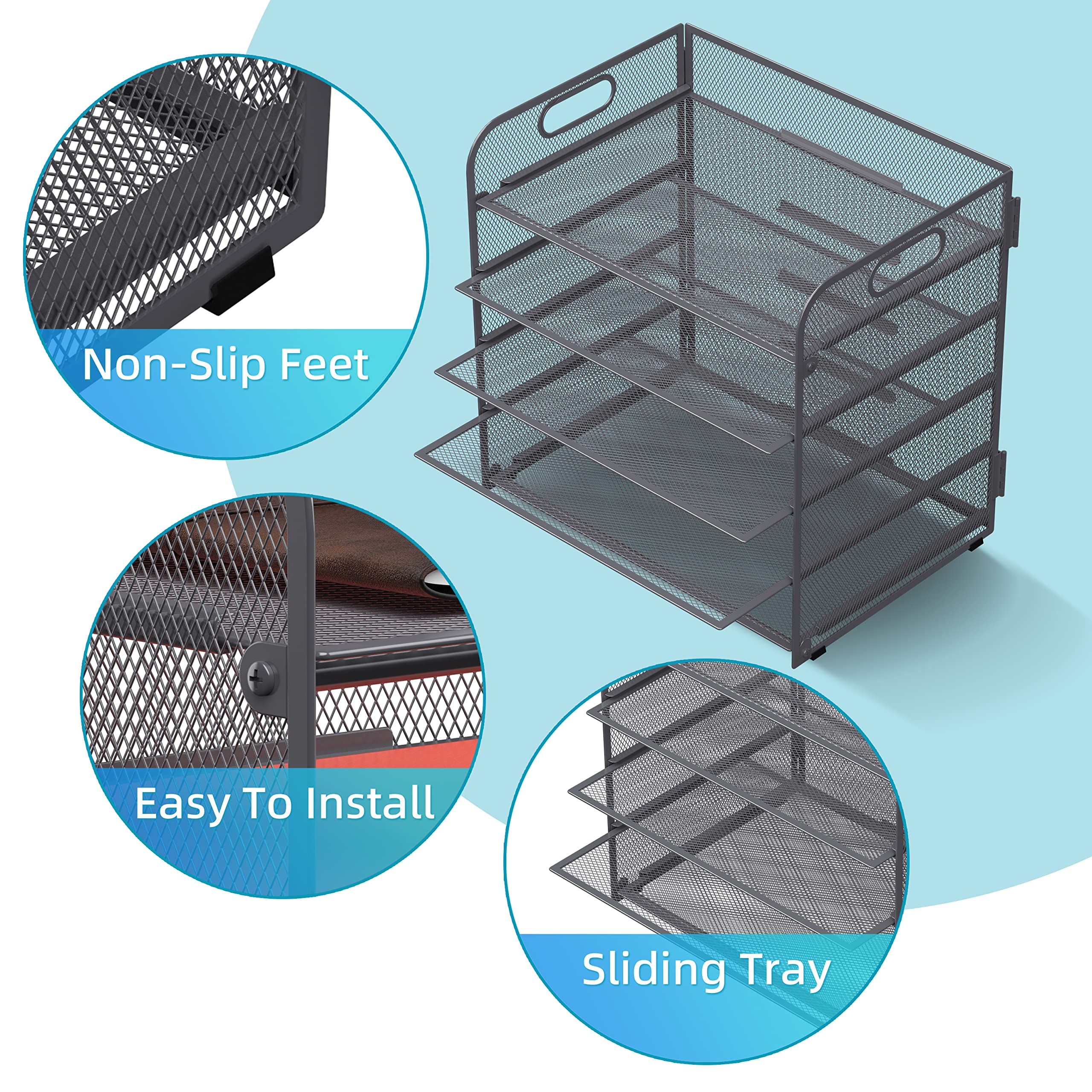 [Sturdier & Robust] Mesh construction desk file organizer, the frame is constructed of industrial-strength steel wire mesh, and reinforced with a solid steel frame. (USPTO Patent Pending, USPTO Patent Application Number: 23715477)