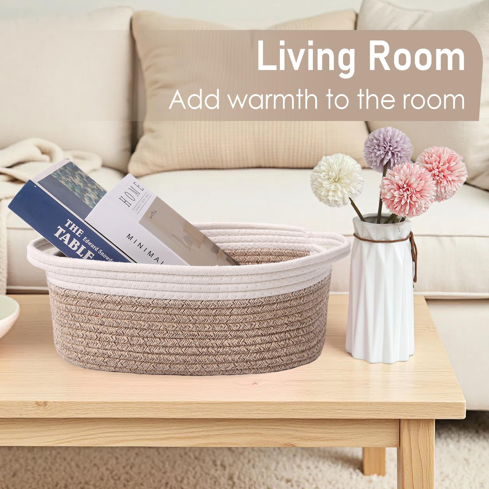 Handmade Woven Basket---Made from natural materials, this woven baskets for storage option is safe for kids and pets. Crafted by skilled artisans, each cotton rope basket is unique in texture and quality.
