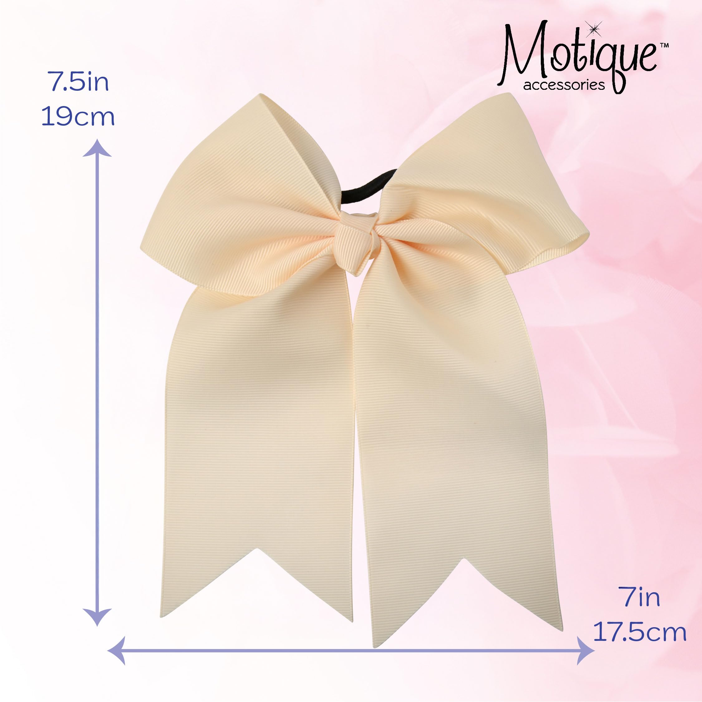 This is a very pretty girls jumbo bow pony with tails. It measures 7 inches wide and 7.5 inches tall from the highest point of the bow until the bottom of the tails. There is a strong elastic hair tie attached to the back. This grosgrain bow will look adorable in your girl's hair! Makes a great stocking stuffer or gift item!