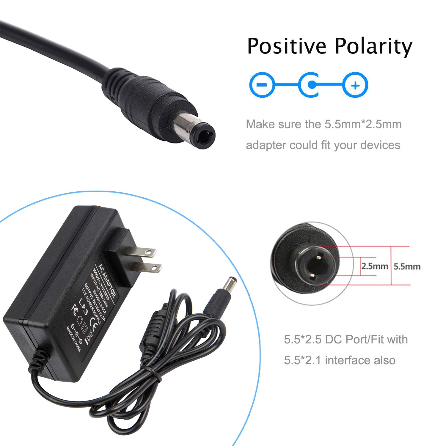 Output: DC 12V 2.5A 30W, 3.6 Ft Cable, DC interface size: 5.5mm x 2.5mm (and compatible with 5.5mm x 2.1mm)