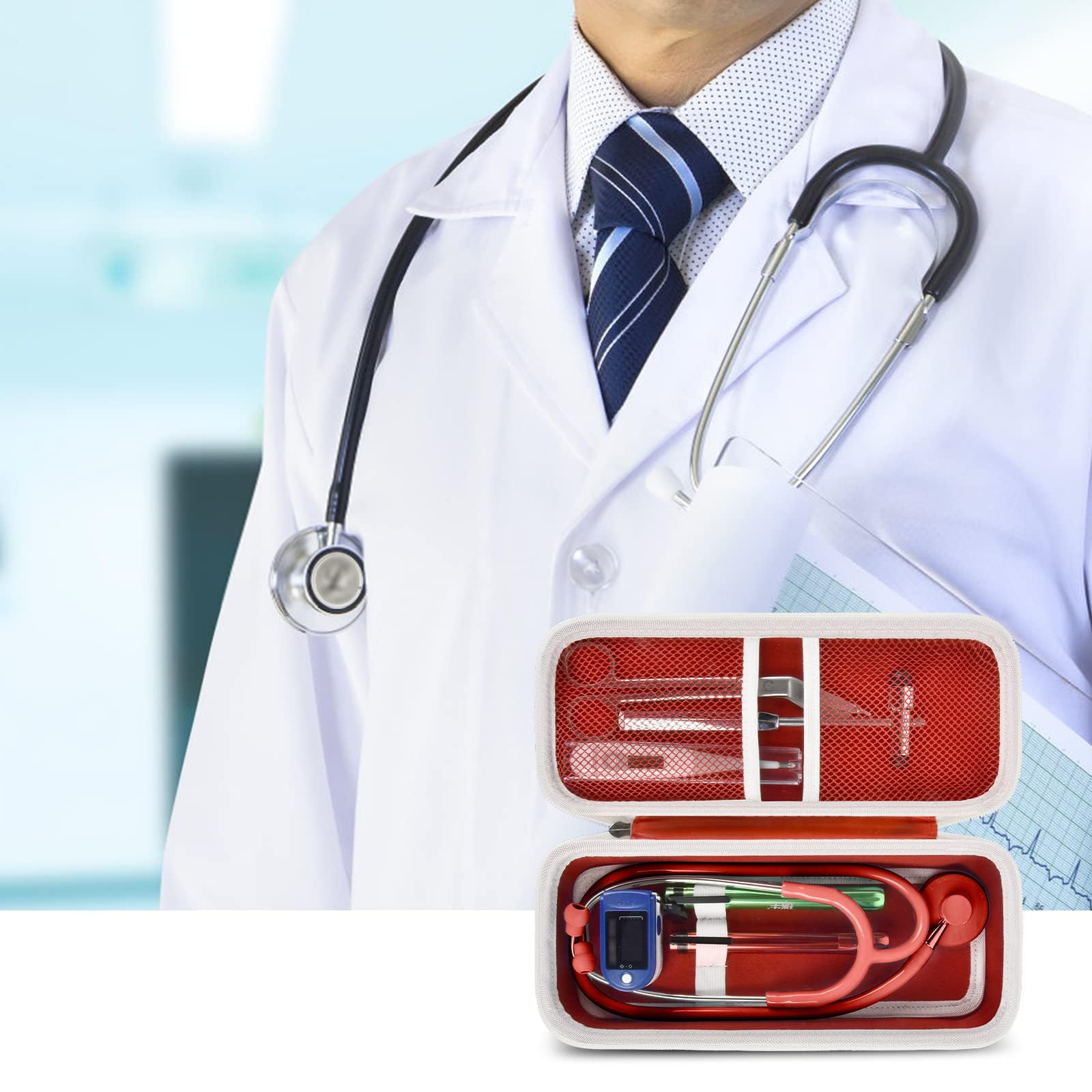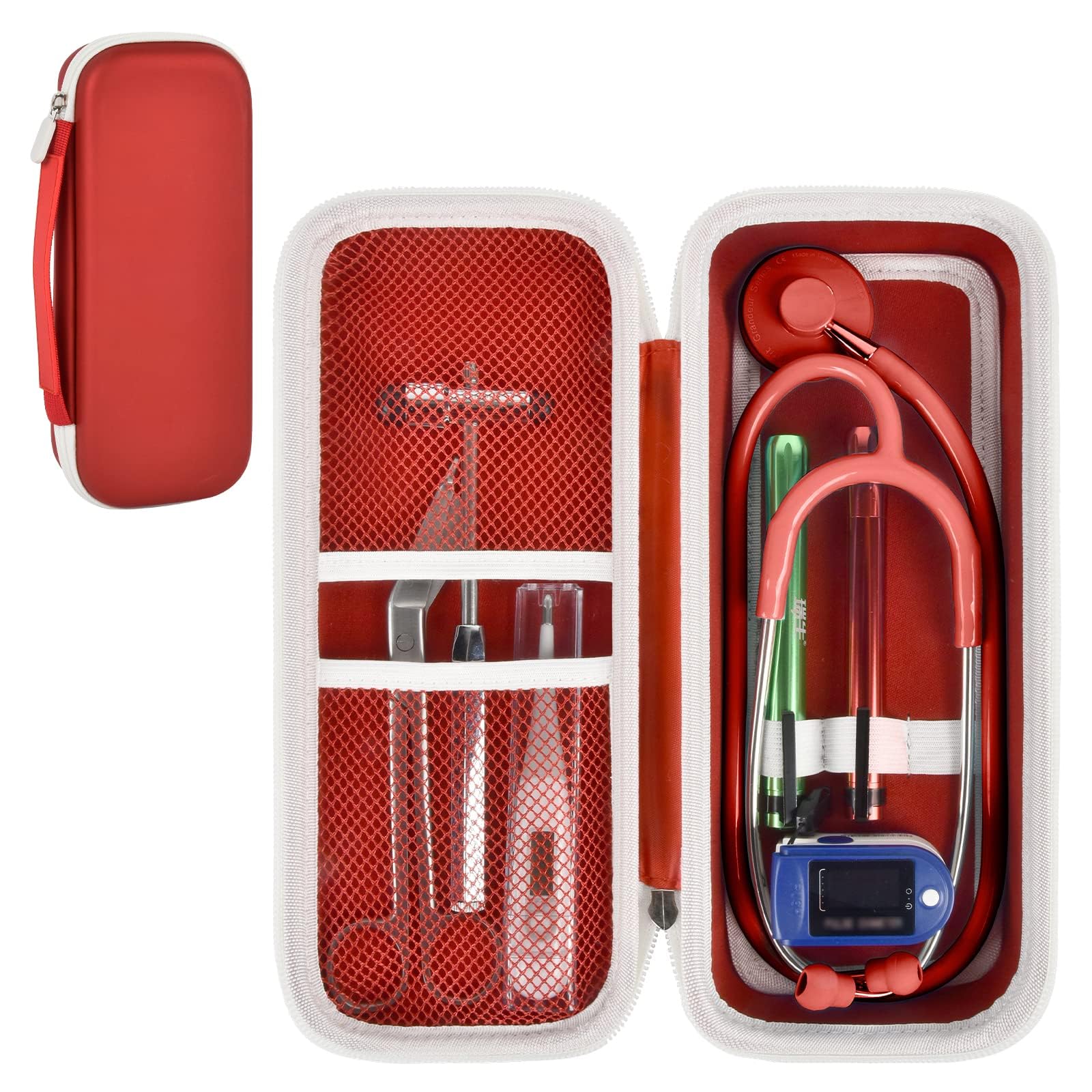 Stethoscope Case of Comprehensive Protection: This case is made of the hard EVA materials, the anti-static, shockproof layer and fluffy fabric inner layer fully padded and effectively absorb impacts, compact fully protect the stethoscope, neurological reflex hammer, medical thermometer, pulse oximeters, and other Littman stethoscope accessories. Prevent shaking and loss; avoid stethoscope breaking.