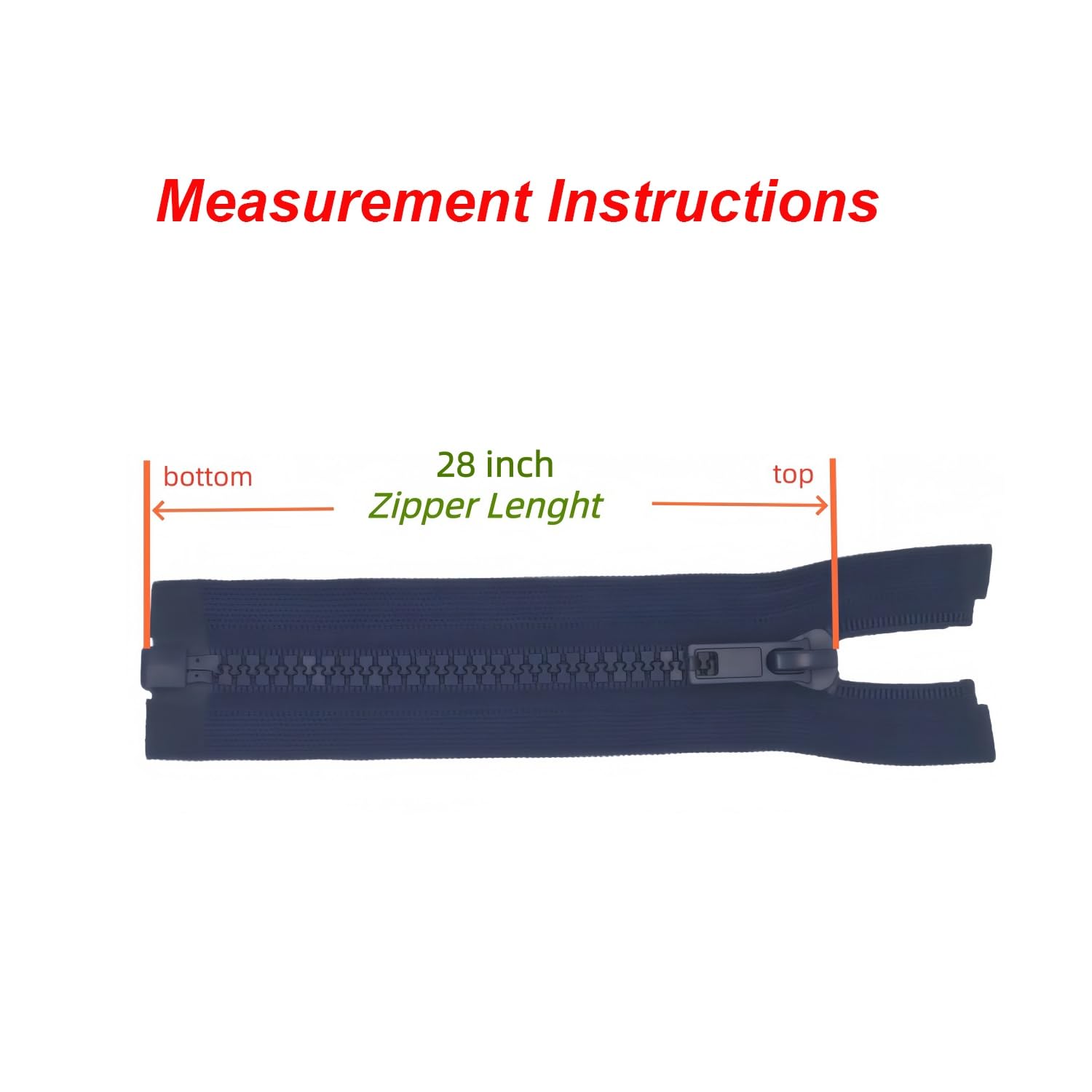 【Length】the zipper length is 28 inch from bottom to top (teeth length), the full length is 29 inch end to end. please refer to the picture for how to measure the length of the zipper