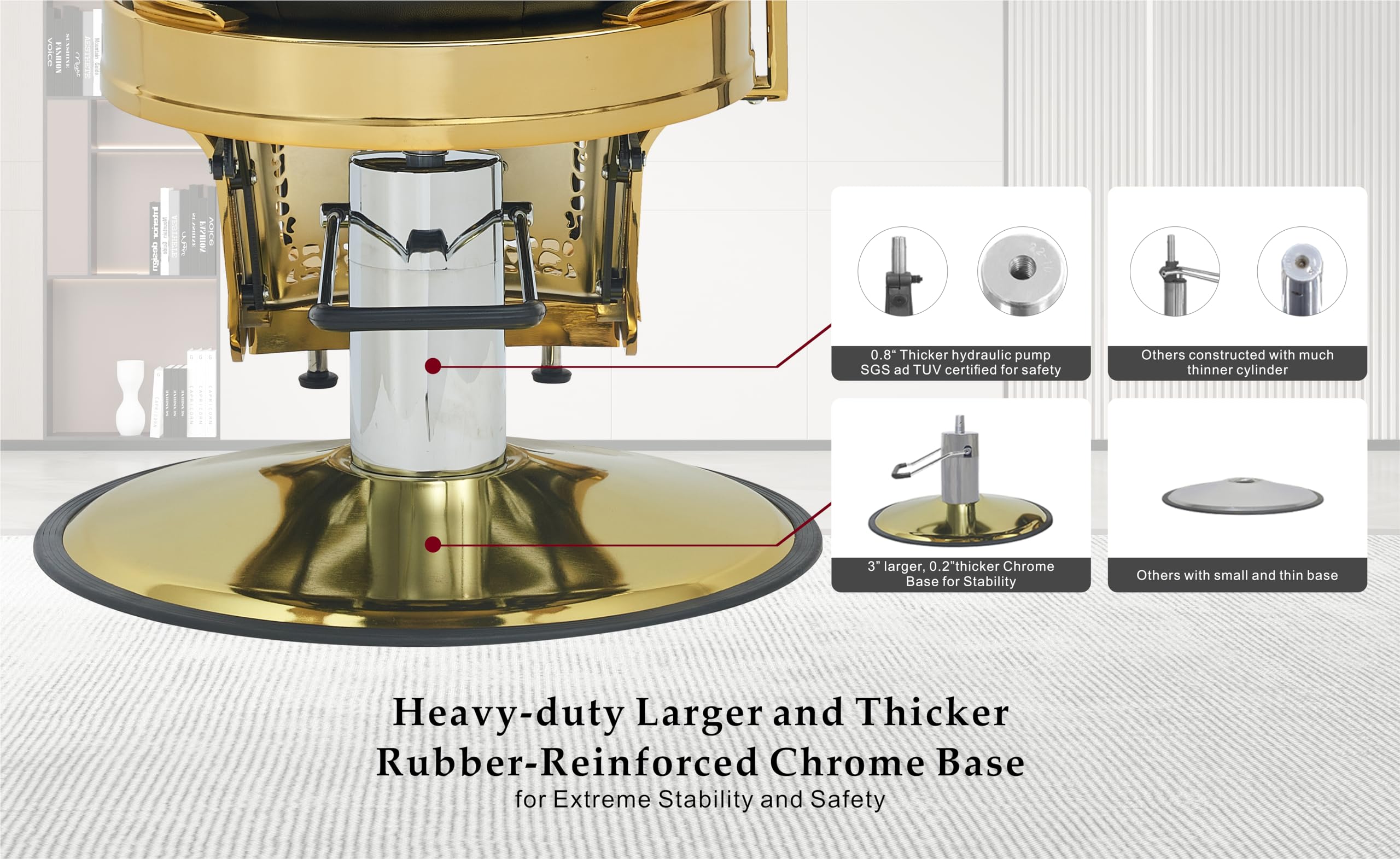 Heavy-duty hydraulic pump system and durable construction: The chair is made of high-quality materials, including strong steel frame, super larger chrome base, extra wider and thicker durable hydraulic pump than regular model. It is designed to with stand heavy use and provide long-lasting performance with a maximum weight of 500 pounds.