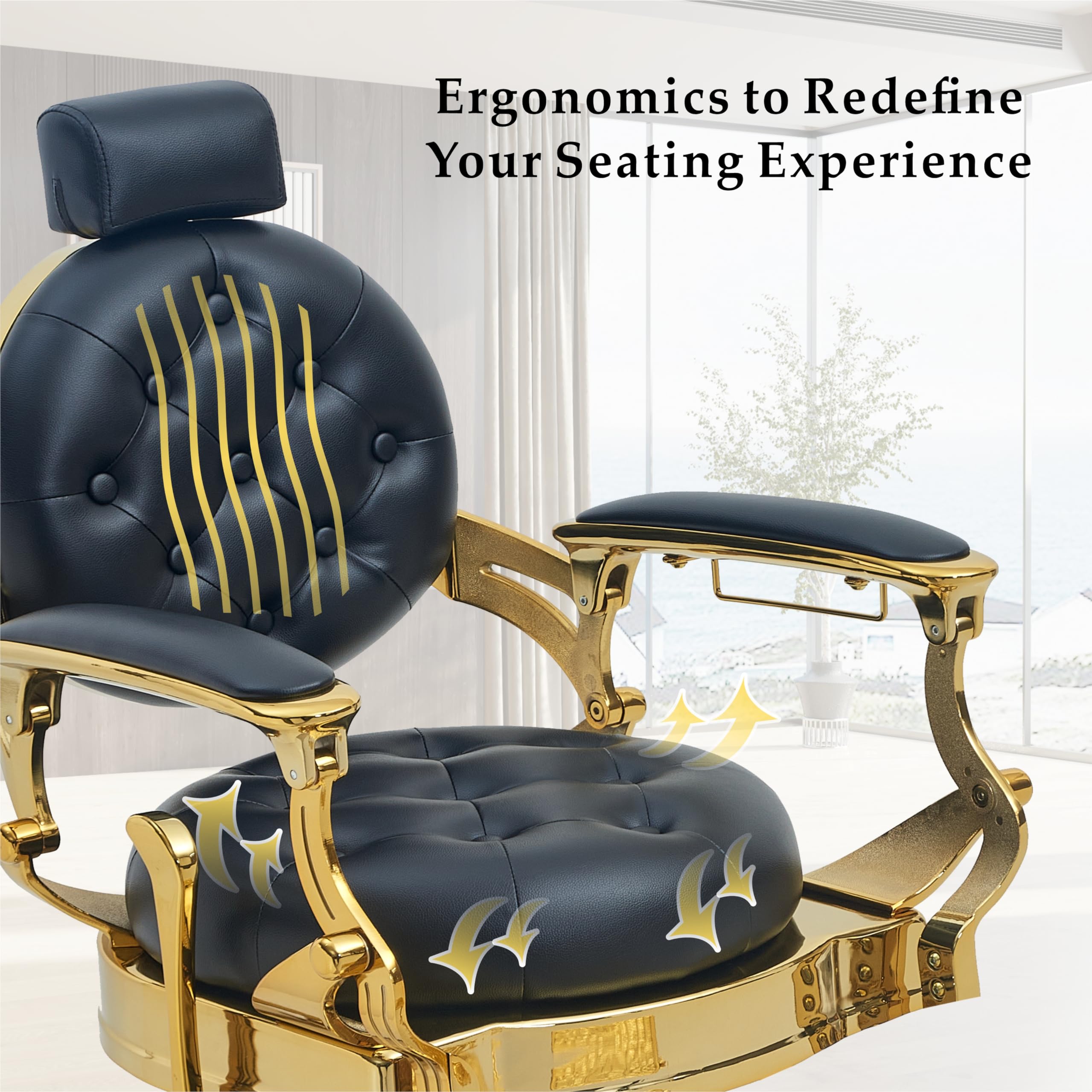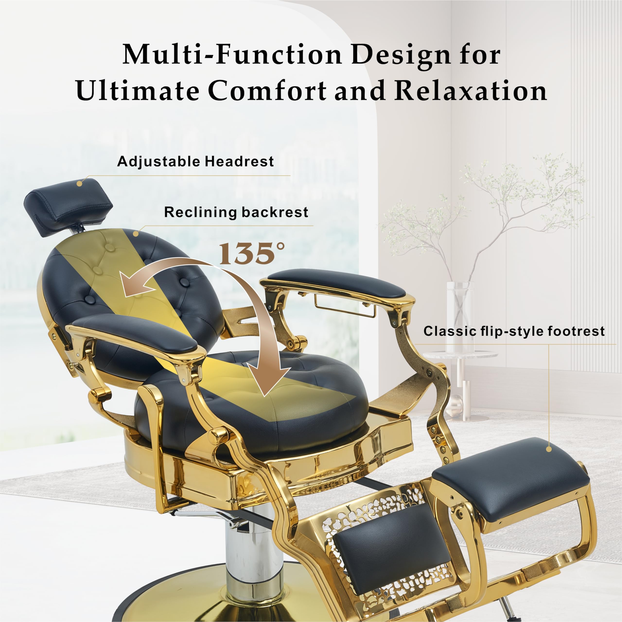 Multi-function to fit various needs: The height adjustable barber chair is equipped with a powerful hydraulic pump system that allows for effortless height adjustment from 43 to 50 inches, up to 135 degree easy tilt and reclining, and 360-degree rotation with locking mechanism, making it easy for you access your clients from different angles.