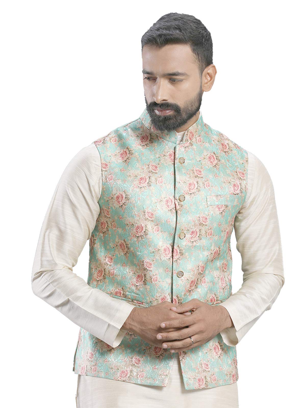 BEAUTIFUL KURTA PAJAMA AND WAISTCOAT SET : This is a 3-pieces set that includes jacket, kurta and a drawstring pajama. Traditional design on this kurta captures all of the details of the classic Indian men's garment with long sleeves, a long hemline with side vents and a mandarin collar.