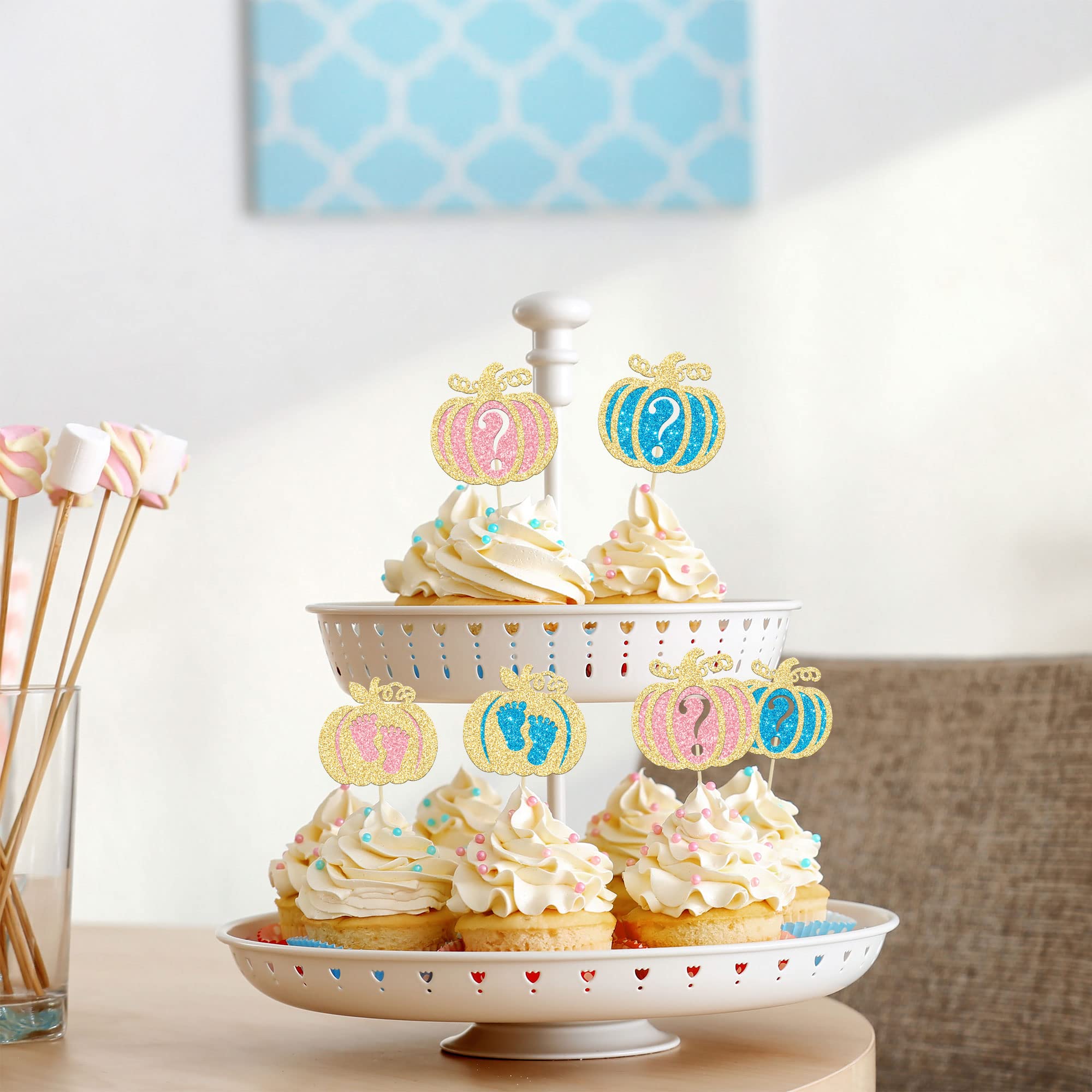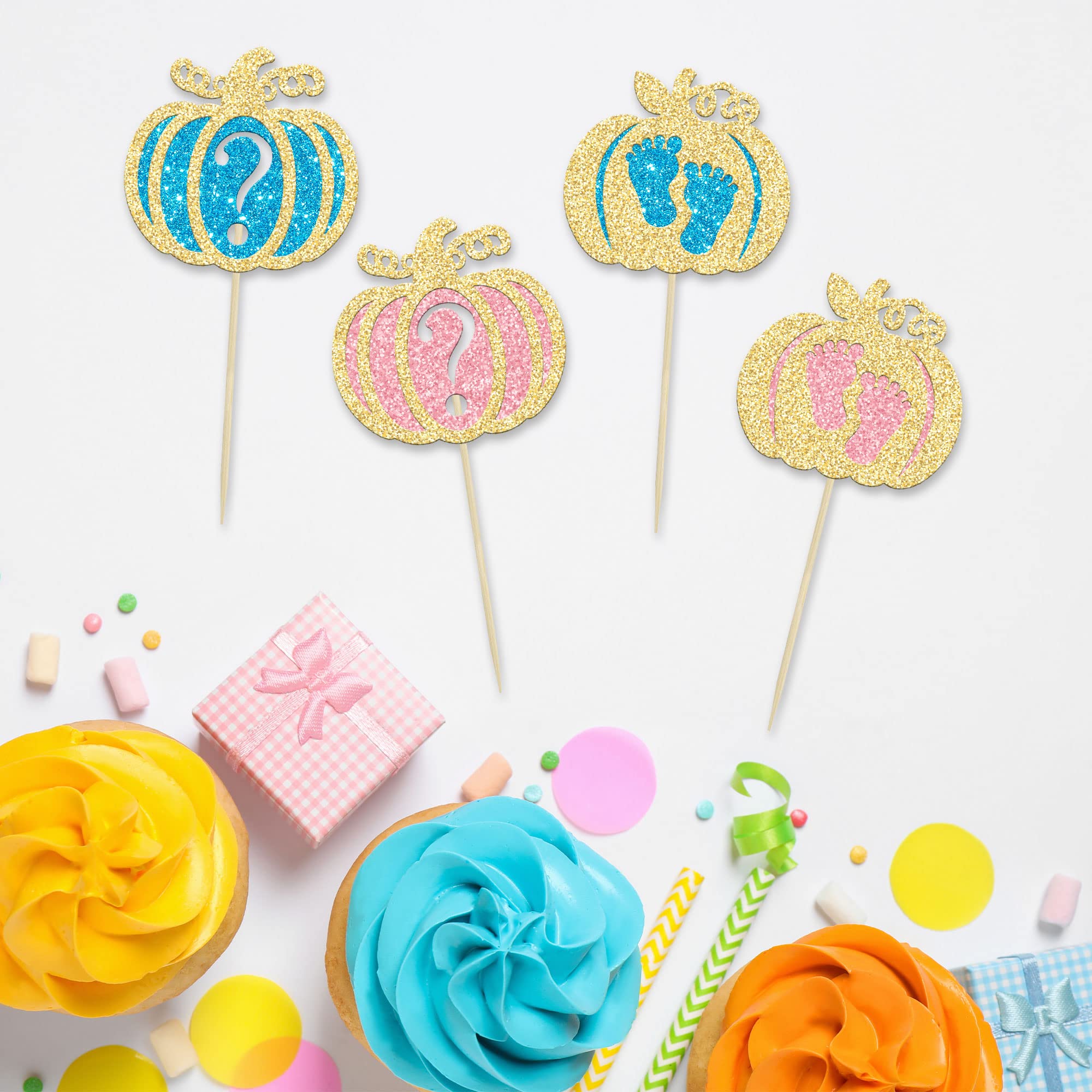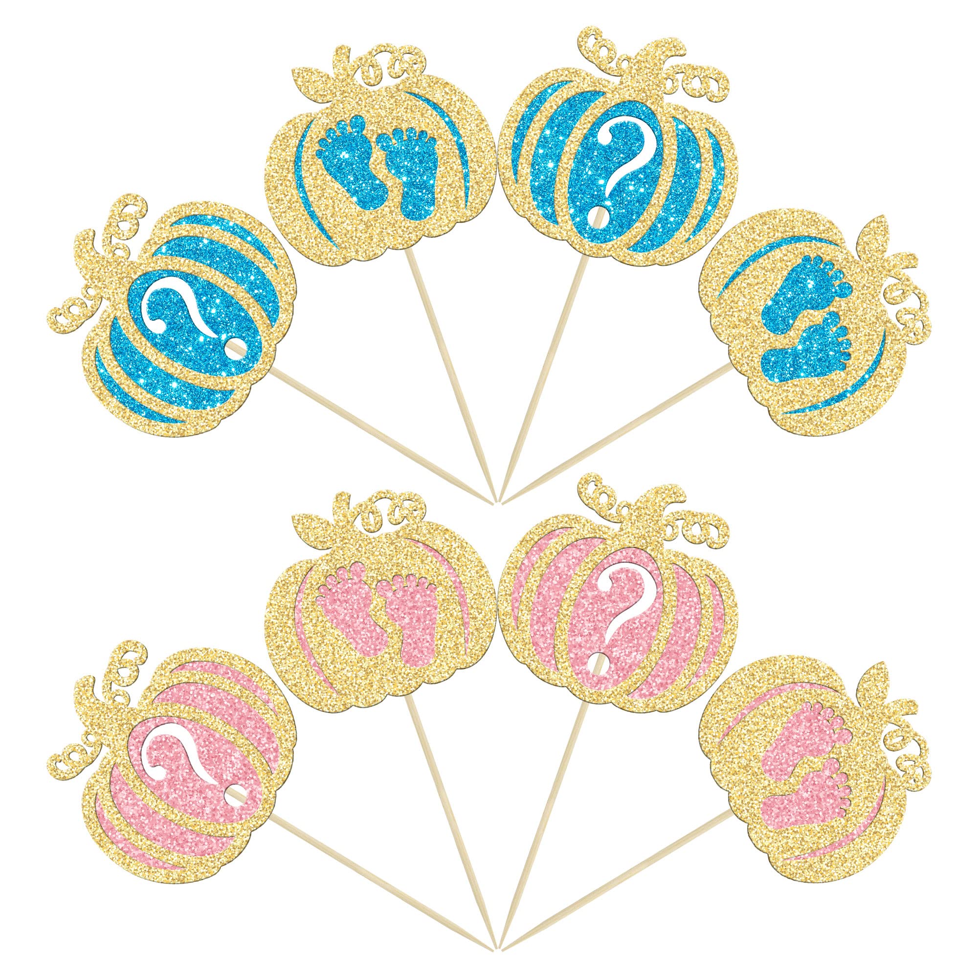 🍰【Package Included】: 24Pcs Pumpkin Gender Reveal Cupcake Toppers. These Pumpkin Gender Reveal Cupcake Toppers are very nice and enough quantity for your use. Perfect for Pumpkin Gender Reveal party!