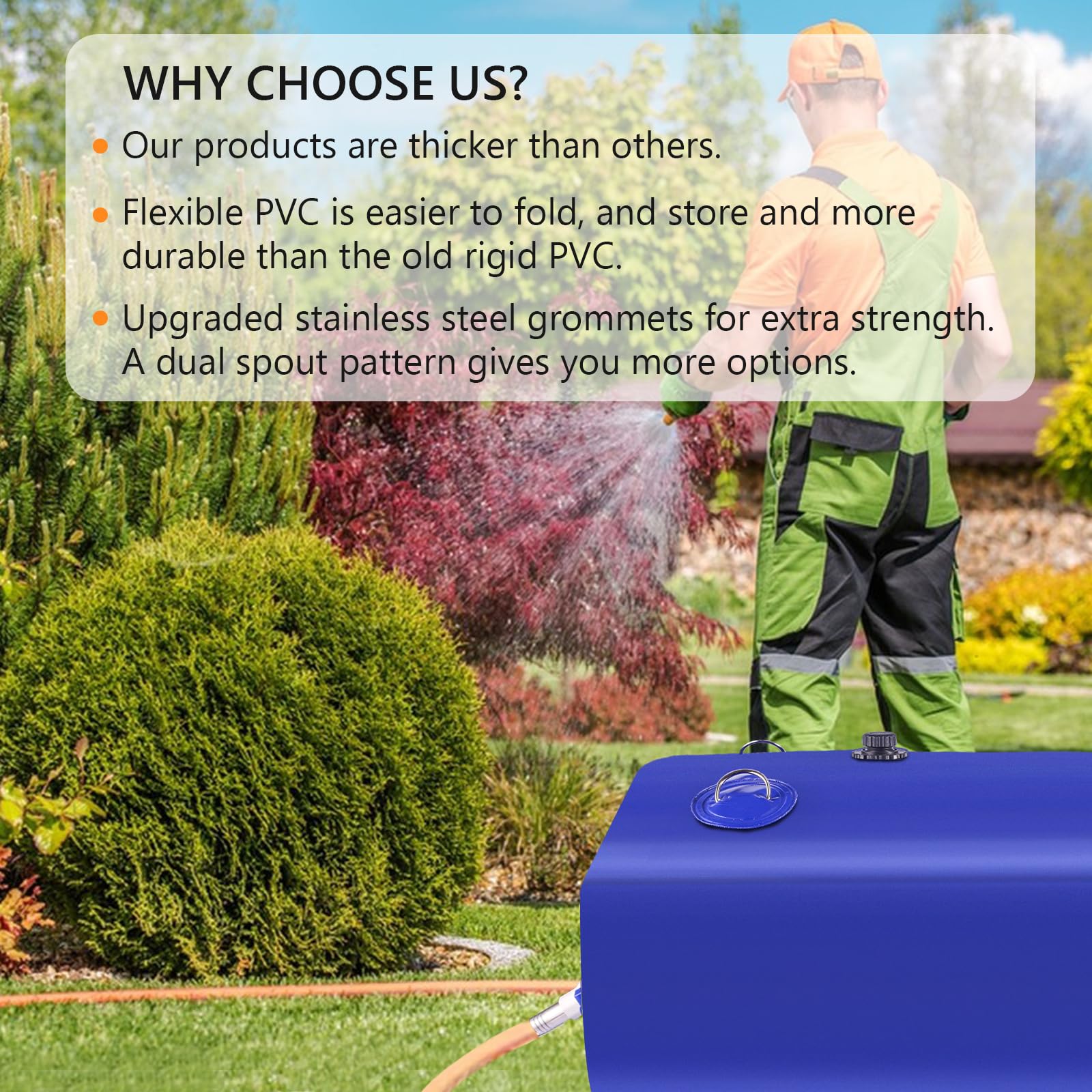 LOFTANK Portable Large Capacity Water Storage Bladder Containers, Foldable Water Bladder Tank, LOFTANK Water tank, 1000D PVC Water Bladder, It is suitable for camping garden drought resistance agricultural Irrigation outdoor RV emergency water, and other places without fixed water storage facilities for emergency water supplies. With our portable water storage bladder in the event of drought, hurricanes, fires, floods, and other emergencies or natural disasters, you can quickly and safely store all the water you need.