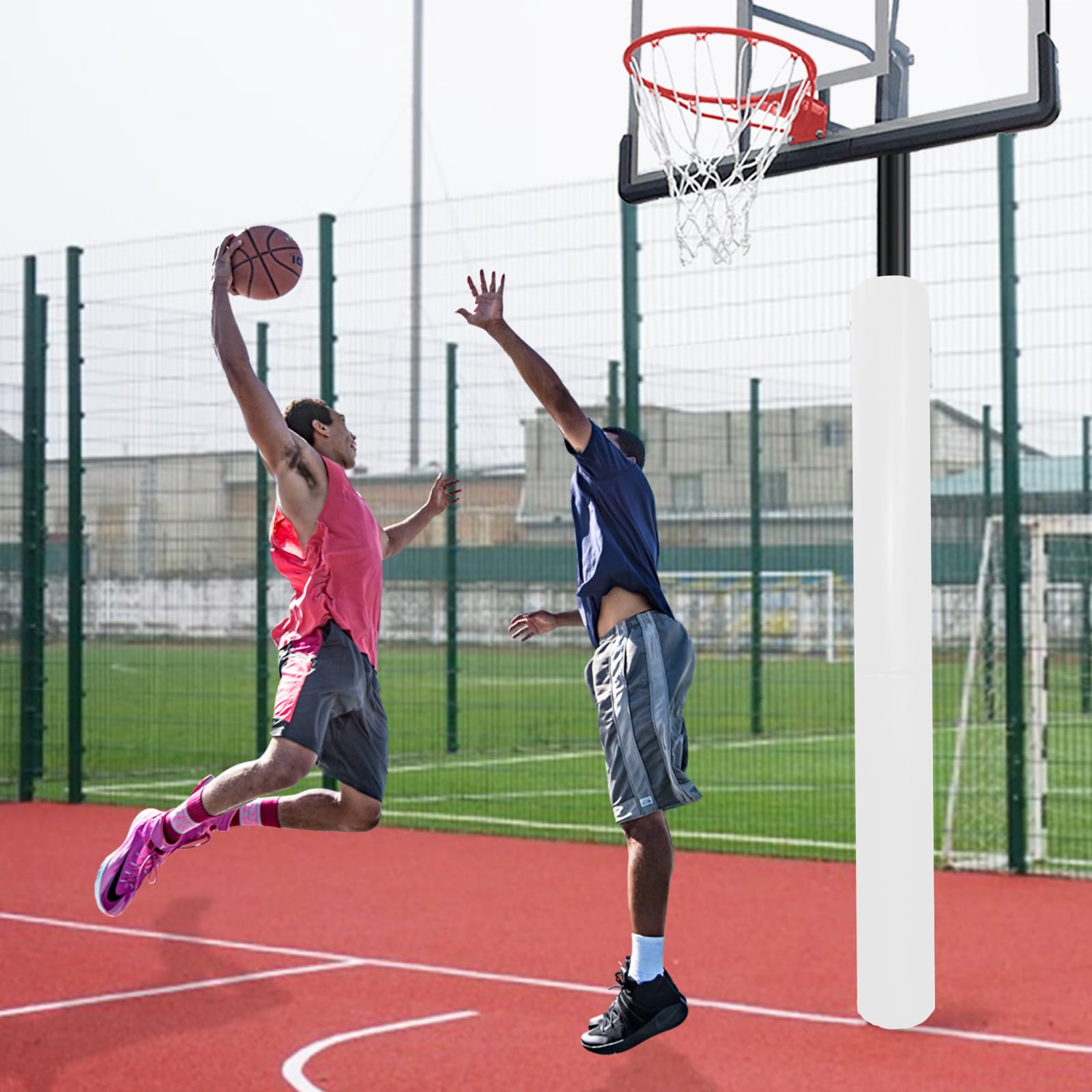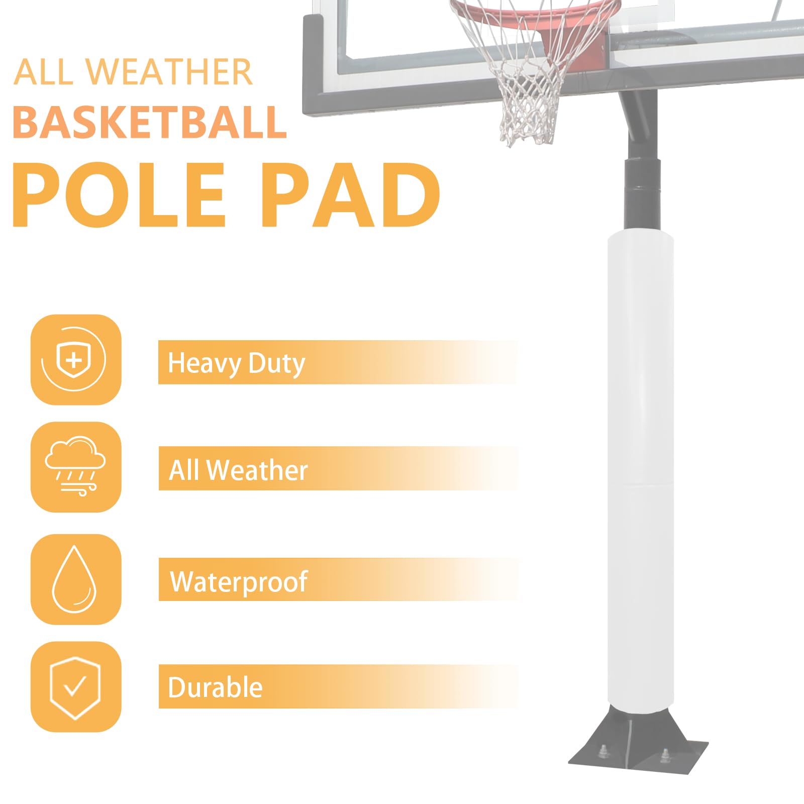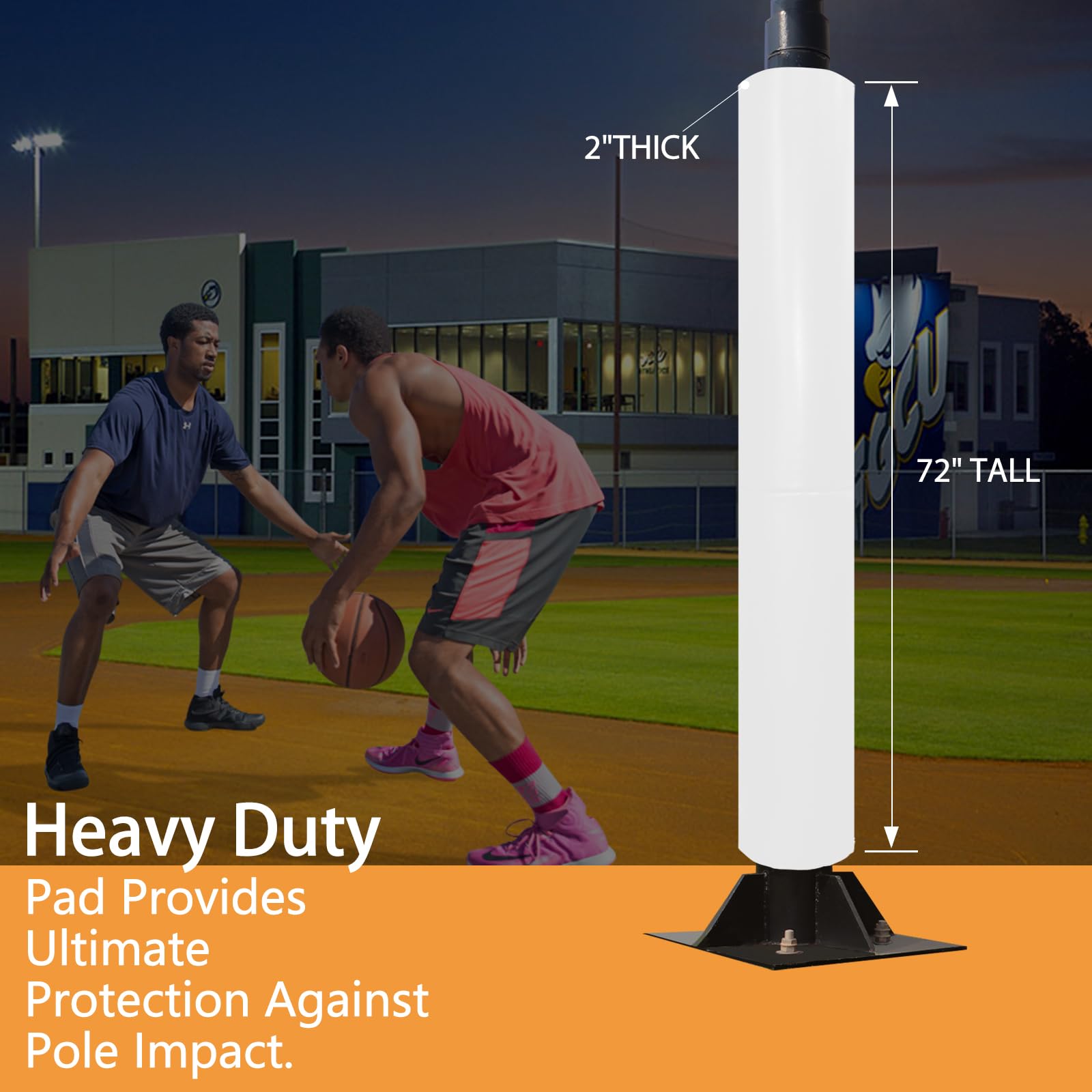 PLAYER PROTECTION — Basketball pole pad provides protection and safety for players during aggressive, rough play.