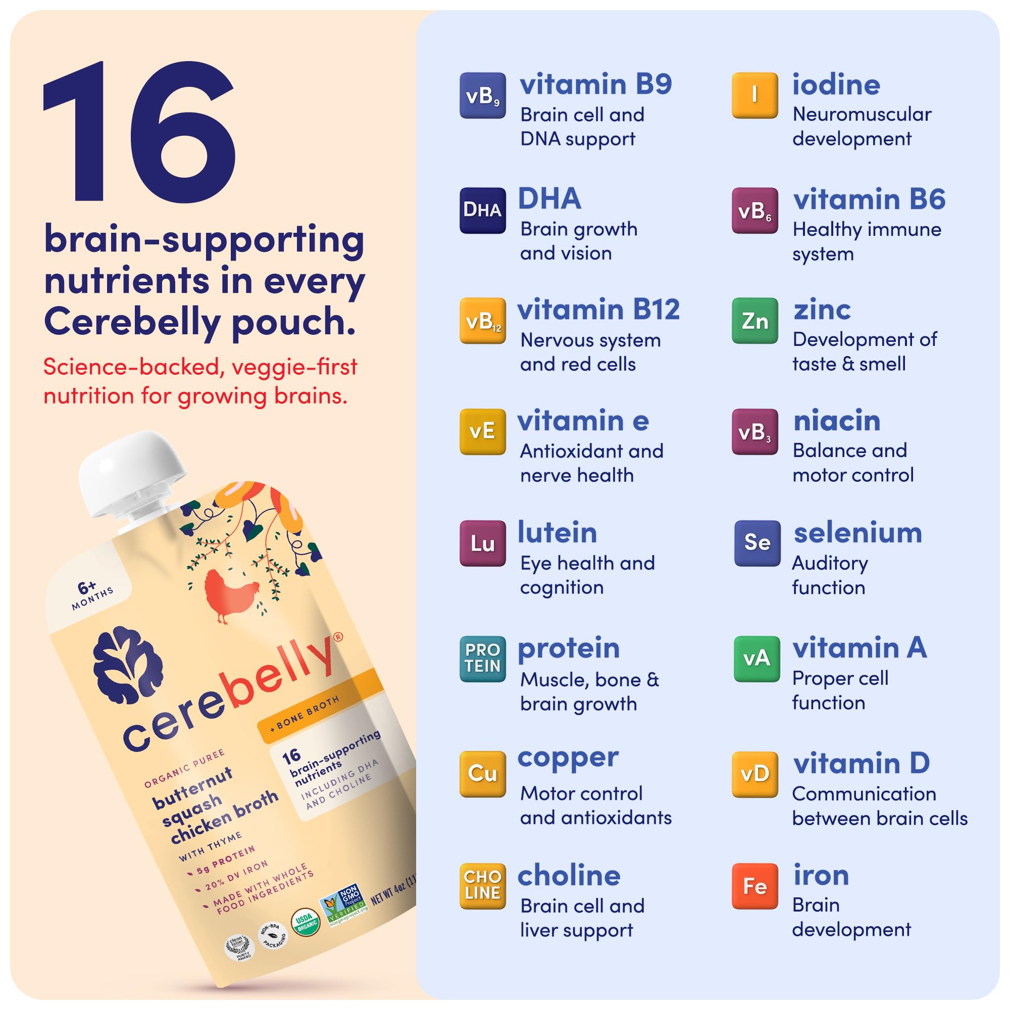 16 BRAIN-SUPPORTING NUTRIENTS – Only baby food with 16 nutrients for development, including potassium, iron & vitamin A