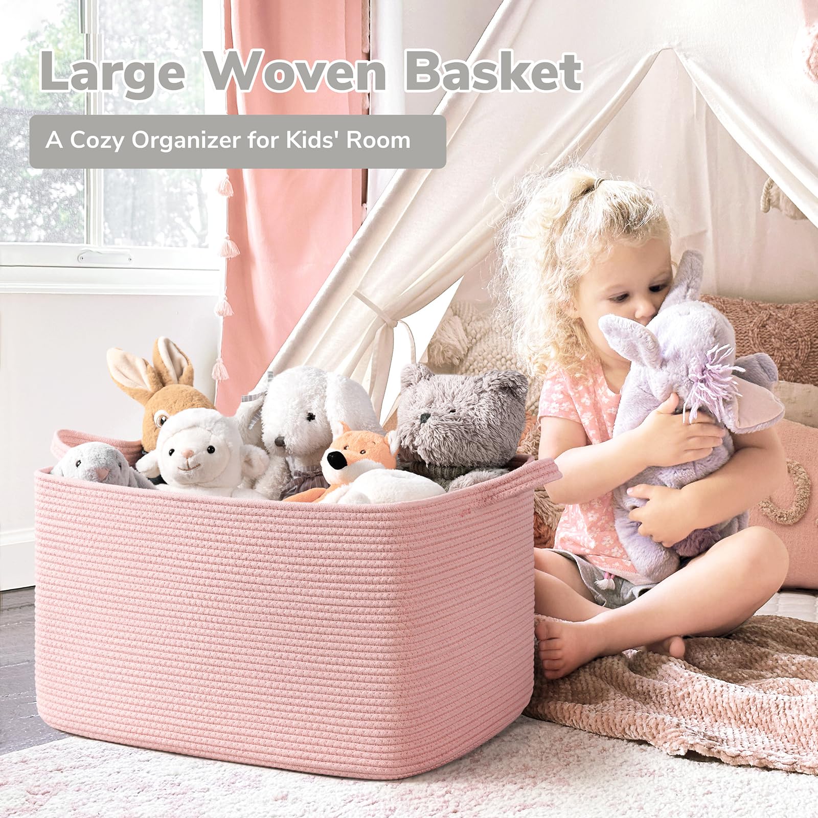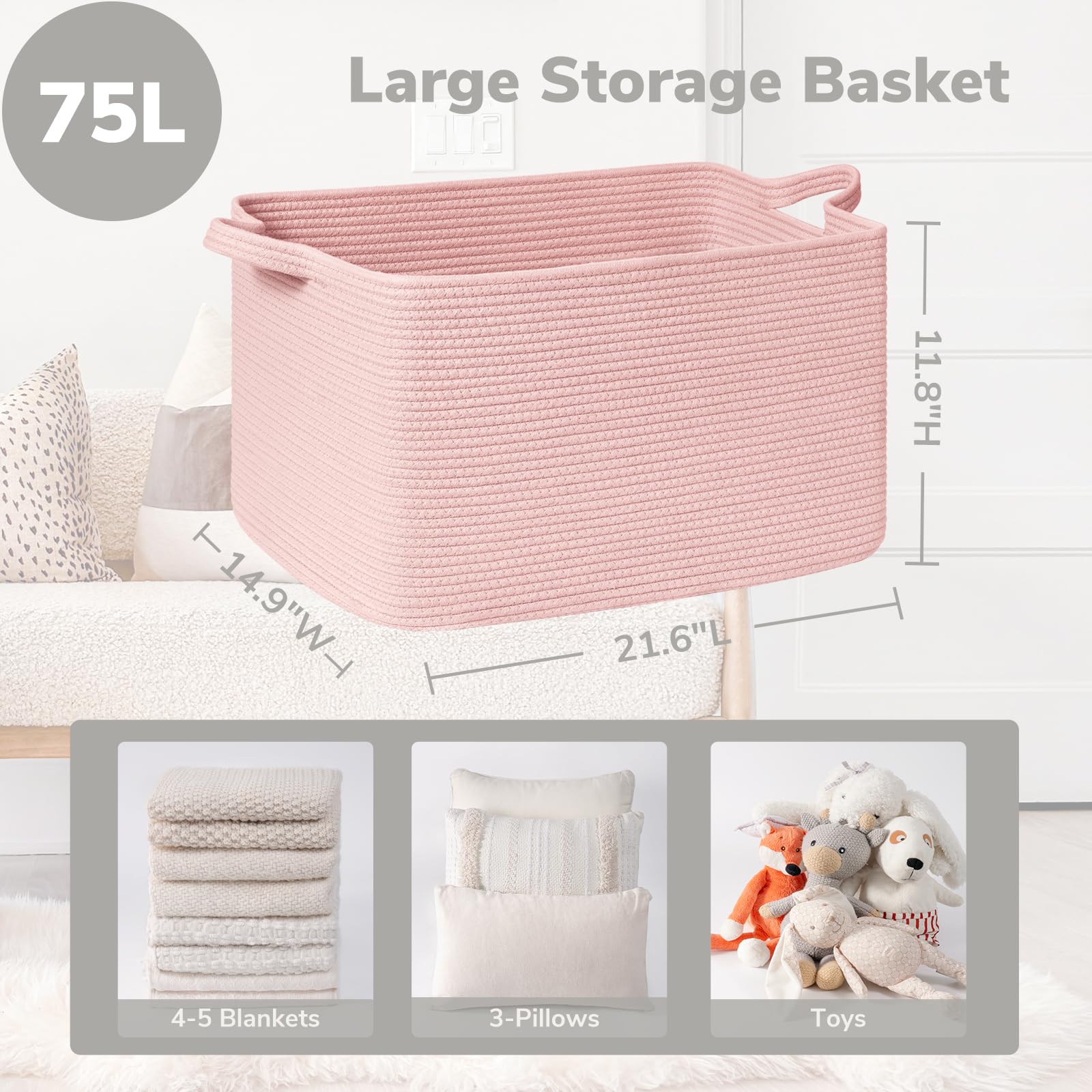 Spacious and Versatile: Measuring 21.6"L x 14.9"W x 11.8"H with a 75L capacity, this large storage basket is perfect for storing blankets, pillows, clothes, towels, toys, and more in the living room, helping you maintain a tidy living space
