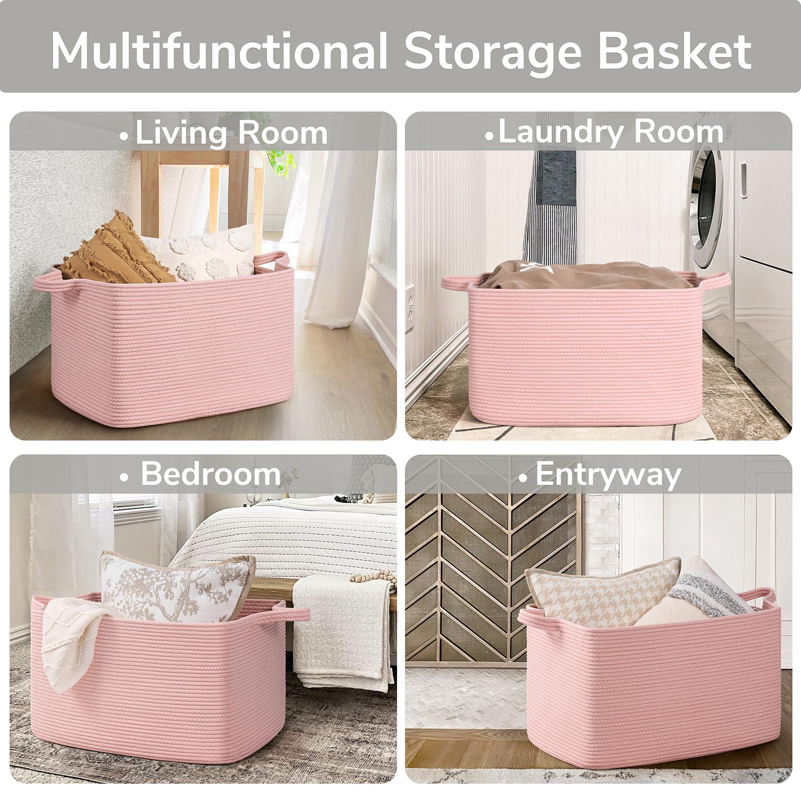 Versatile Storage Solutions: This rope basket is versatile and can be used anywhere in the home. It is a perfect storage basket for the living room, laundry room and bedroom. It not only provides convenient storage space but also adds beauty and tidiness to the home