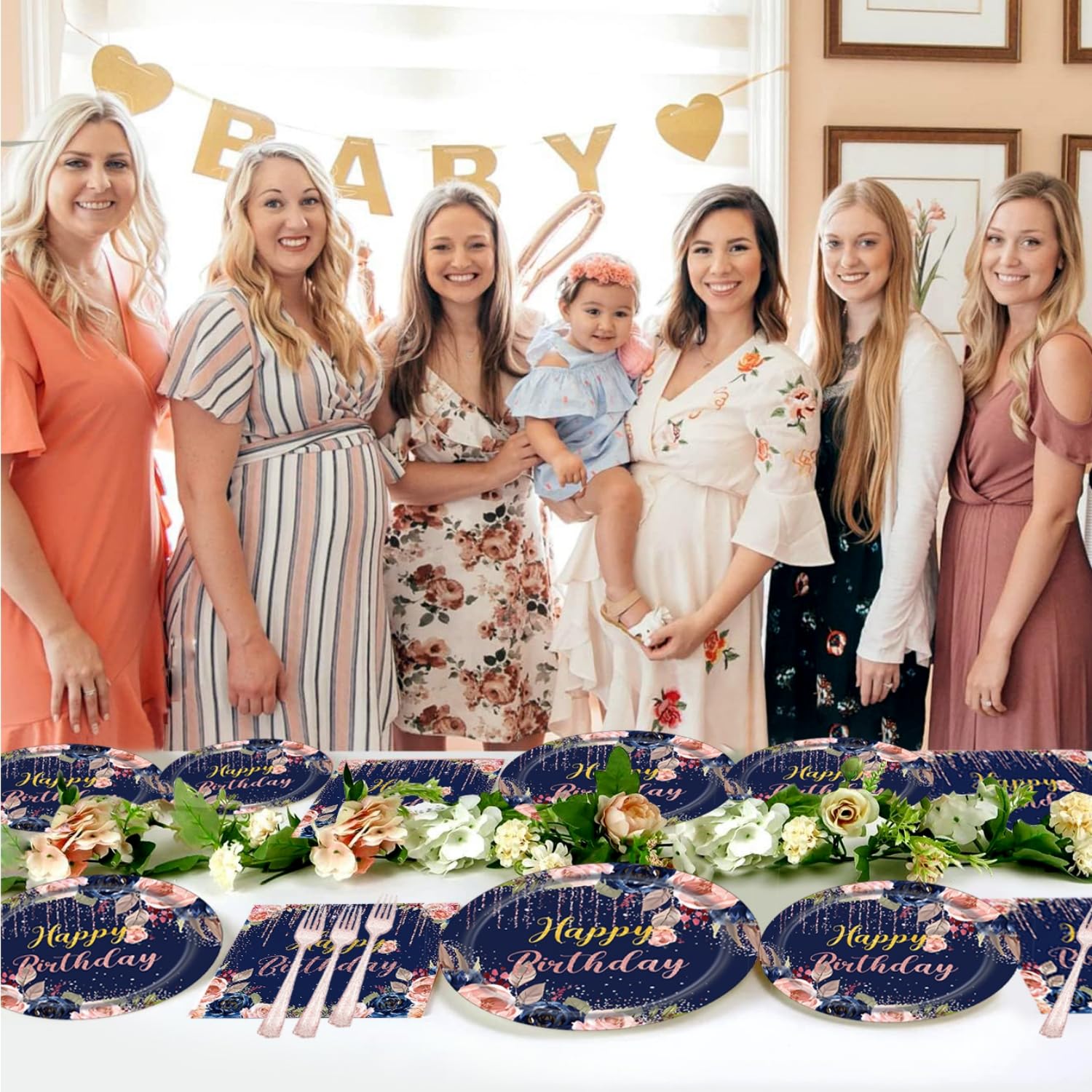 Perfect Party Supplies: This navy blue birthday tableware kits can serve 24 guests, enough quantity for navy blue rose gold theme party. It can be used for a variety of occasions such as birthday parties, school events, baby showers, etc.