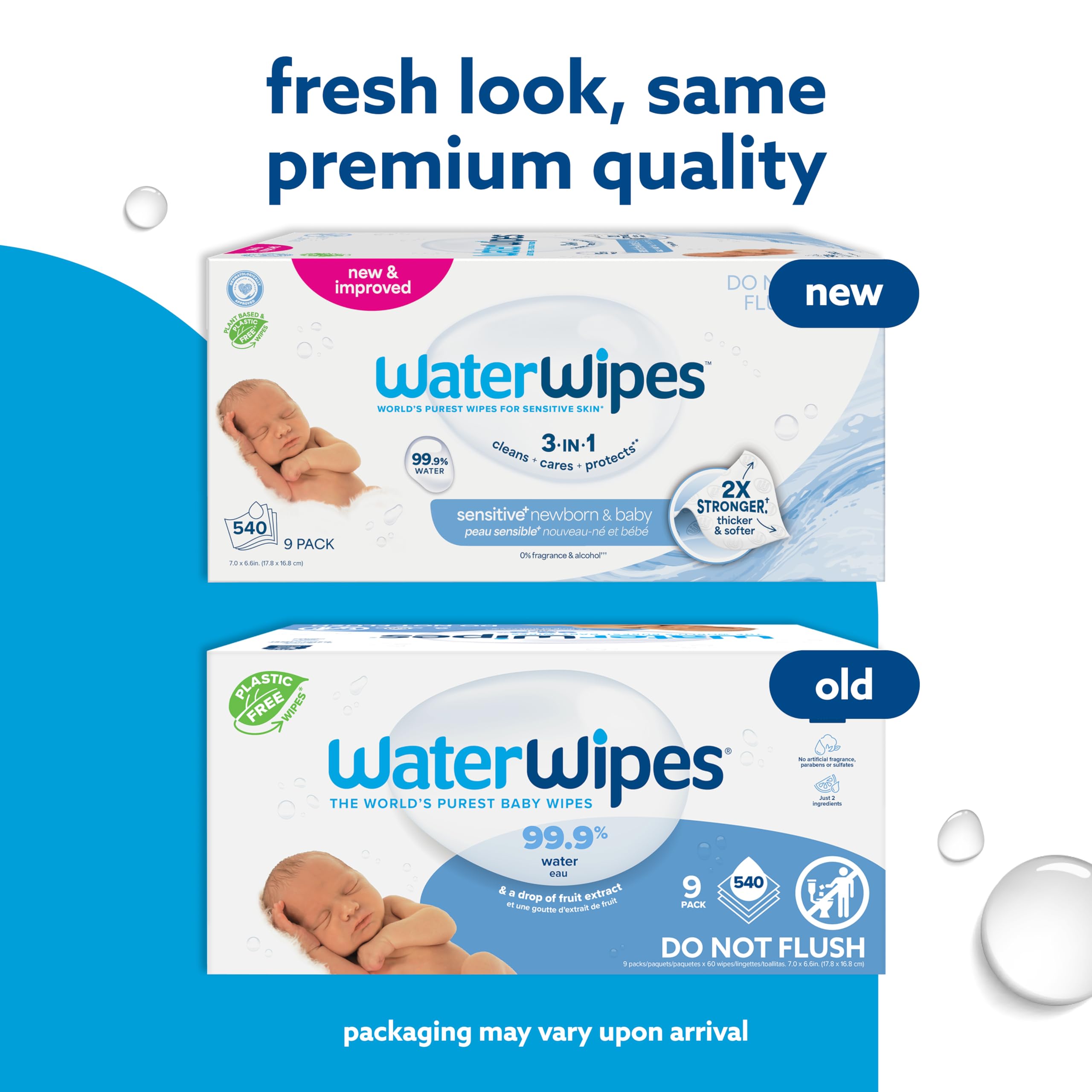 Introducing New & Improved WaterWipes, the World’s Purest Wipes for Sensitive Skin. Families can continue to trust WaterWipes Sensitive+ New Born & Baby Wipes to gently clean, care and help protect sensitive skin - now with a 2X stronger†. Thicker and softer wipe, and a fresh new look. Our plant-based & plastic free†† wipes maintain the same purity, with just two carefully selected ingredients: 99.9% ultra-purified water and a drop of fruit extract. Our ultra-purified water undergoes a 7-step process, making it even purer than tap, boiled, or bottled water. WaterWipes remain unscented, hypoallergenic, and gentle on sensitive skin. They are clinically proven to be kind to baby’s skin—giving parents the confidence to help protect their children in the purest way possible. WaterWipes was born from a father's love—our founder created these wipes after his newborn suffered from diaper rash, realizing that skin this pure deserves care that’s just as pure. That inspiration led to the creation of the world’s purest wipes for sensitive skin, trusted by families worldwide for everything from diaper changes to messy hands and faces. †material than previous WaterWipes™ ††Claim does not refer to the full product lifecycle nor packaging. Wipes made from regenerated cellulose.