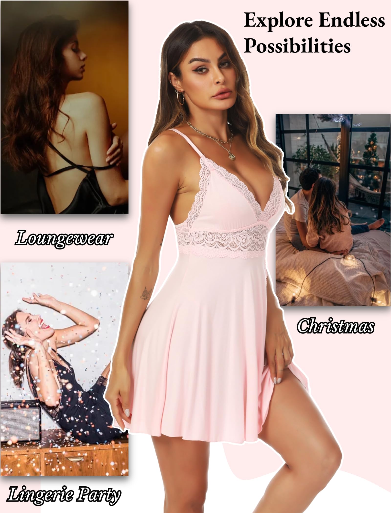 Adjustable Fit: Enjoy a personalized fit with our lace chemise adjustable shoulder straps features. The sexy plunging v-neck and bust lace trim it perfectly contours to your body, providing maximum comfort and confidence