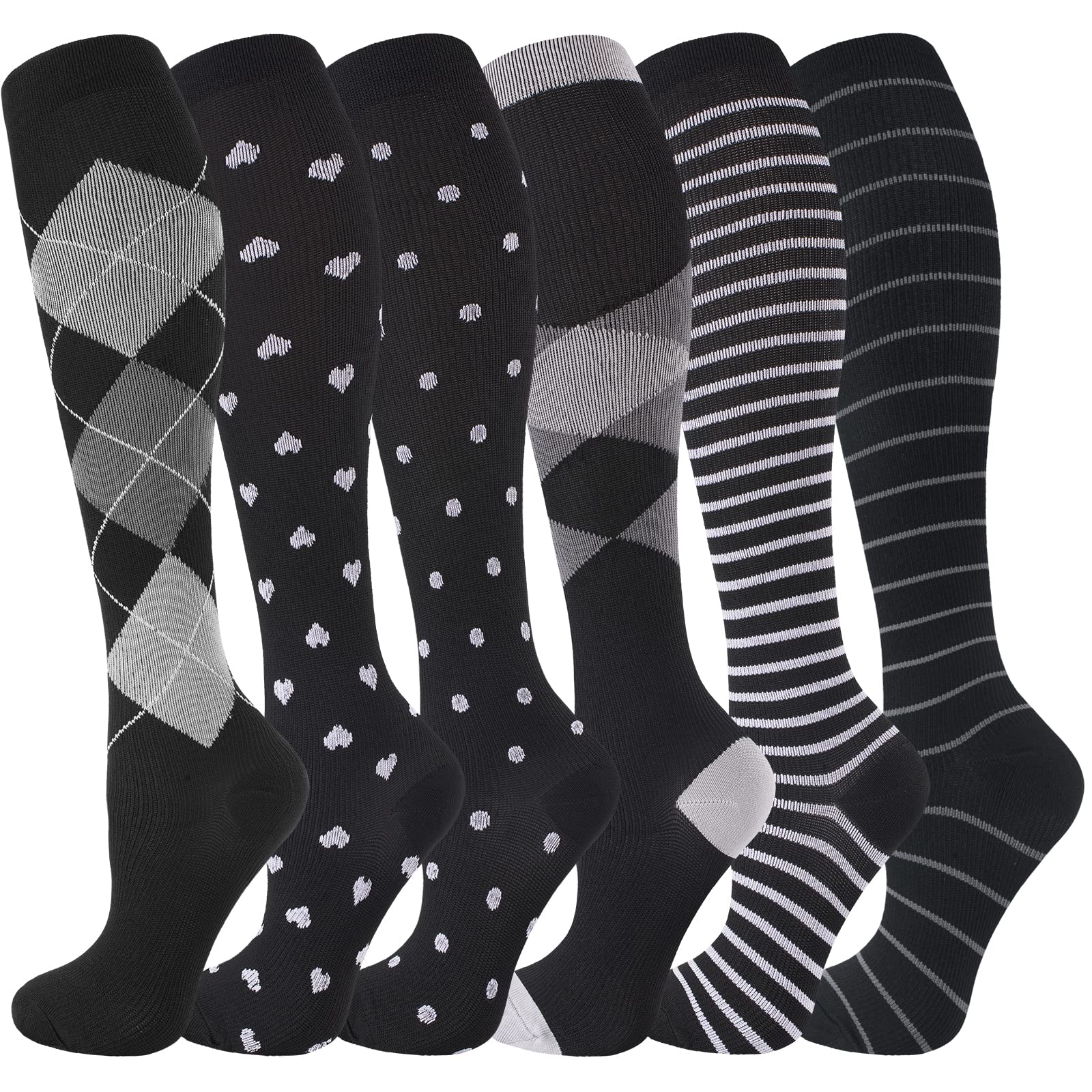 COMPRESSION: Our compression socks provide graduated compression, with pressure highest at the ankle and gradually decreasing upward. The targeted compression stimulates blood flow circulation, decreases muscular fatigue and improves athletic performance. These compression socks are suitable for sports training and daily wear.