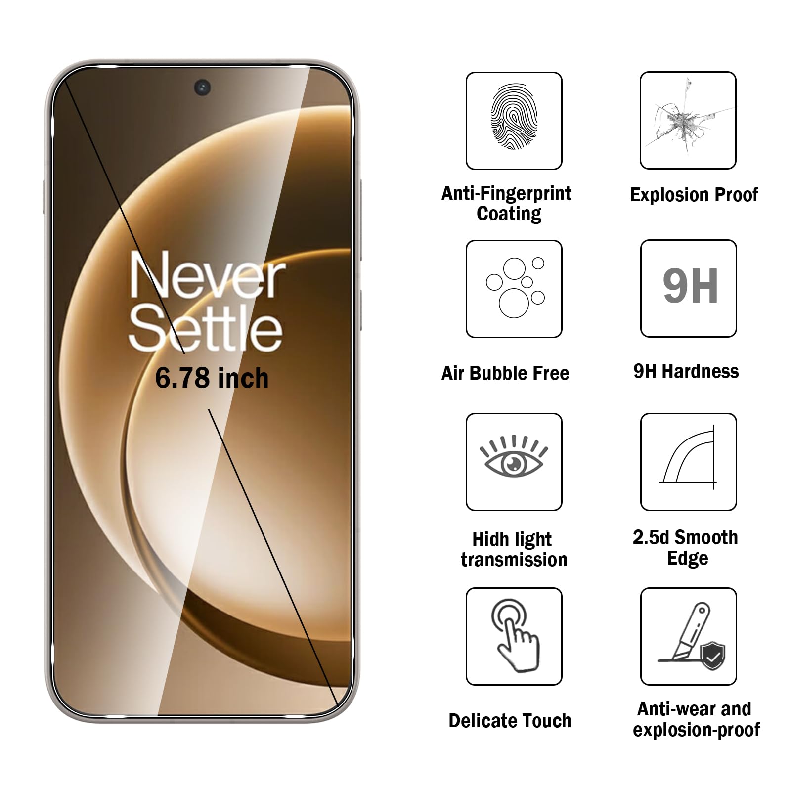 [Compatibility] The screen protector and camera lens protector Only Compatible with One Plus15,Not compatible with other phone models!!! Please confirm your phone model carefully before purchase.It is 100% brand new,precise laser cut tempered glass, exquisitely polished,2.5D rounded edges makes curved edges of the screen protector to perfectly fit curved corners,the space between the phone and the screen protector enables the proper space for the installation of most phone cases.