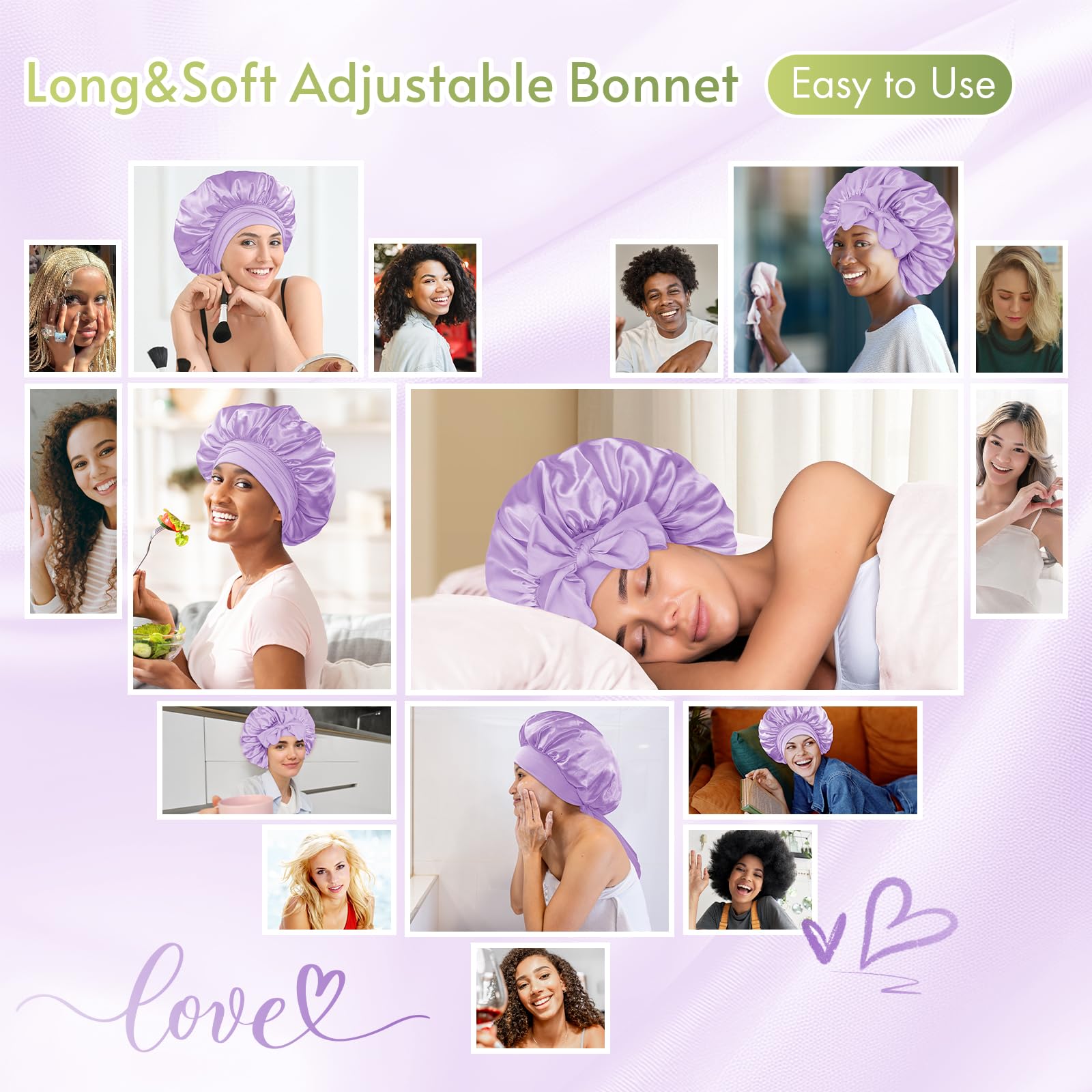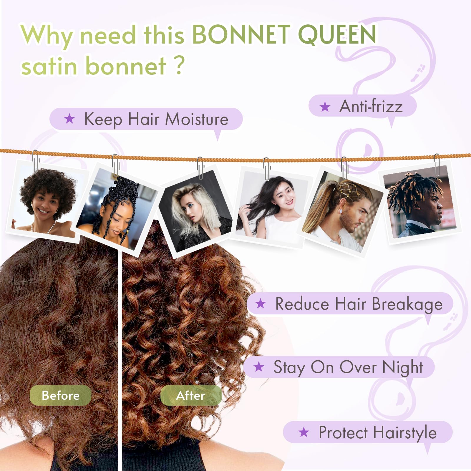 Quality material: Bonnet part is made of good texture silky satin, which is breathable and smoothy, and can keep hair moisture too. Long band is made of stretchy spandex material, comparing common elastic band Bonnet, this Bonnet wouldnot make you feel tight and leave imprint on head, and much more cosy.
