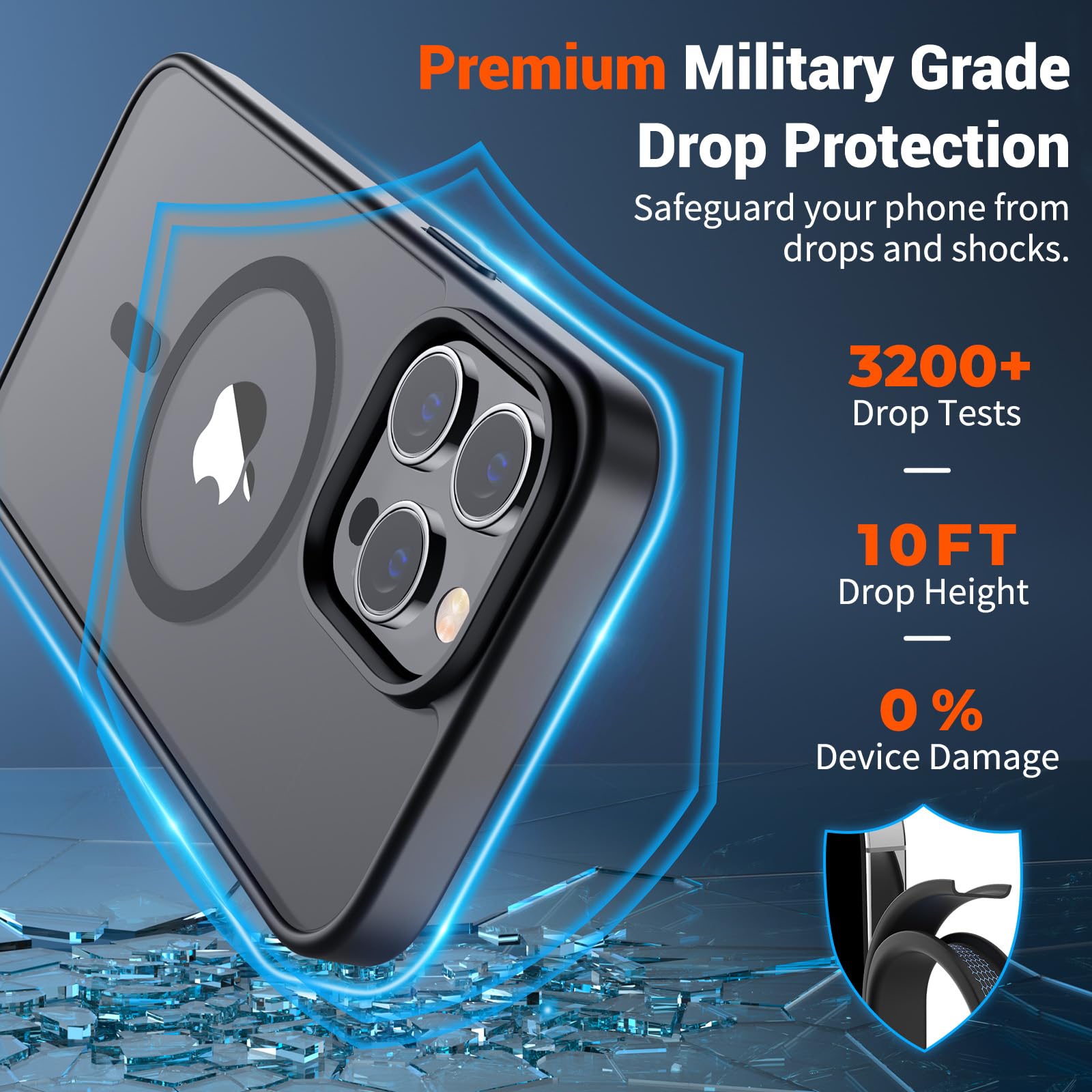 Shock Protection: Passing military drop tests up to 10 feet, your device is effectively protected from violent impacts and drops