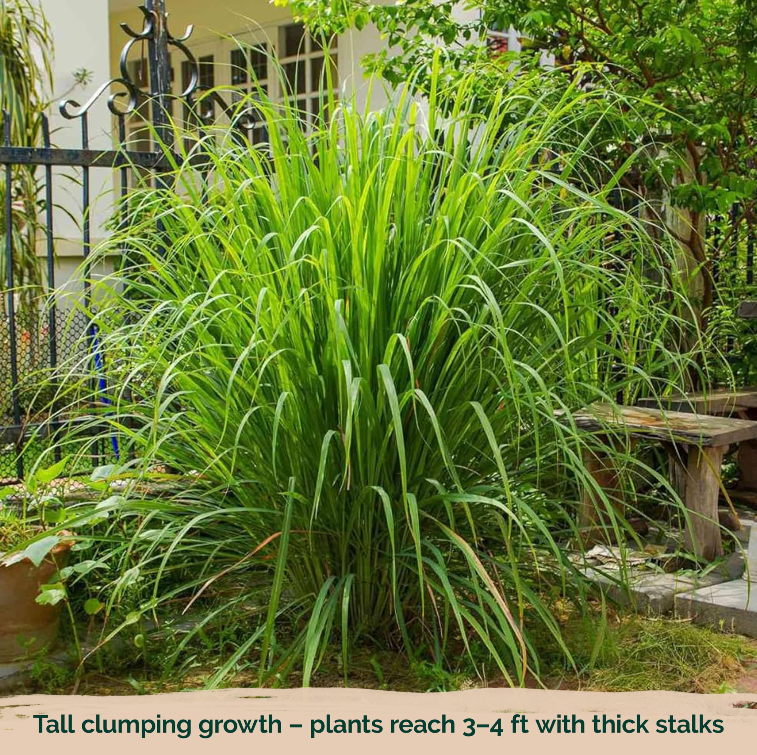 Compact, Upright Growth: clumps reach 3–4 ft with harvestable stalks from 18 in; lemongrass for cooking; great for containers and kitchen garden; start indoors then transplant for strong yields.