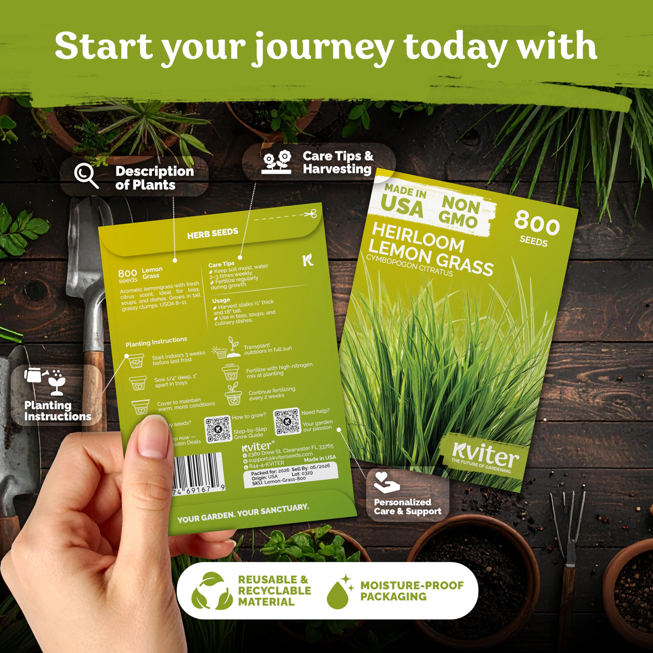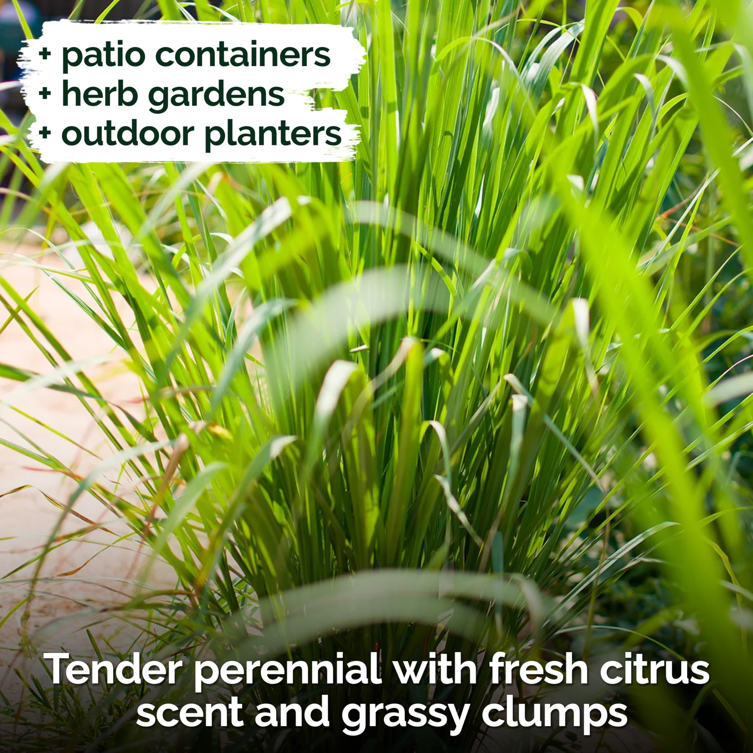 Low-Maintenance Care: moderate watering, moist well-drained soil; feed high-nitrogen fertilizer during growth; ideal lemon grass plants for outside; open-pollinated herb seeds for planting.