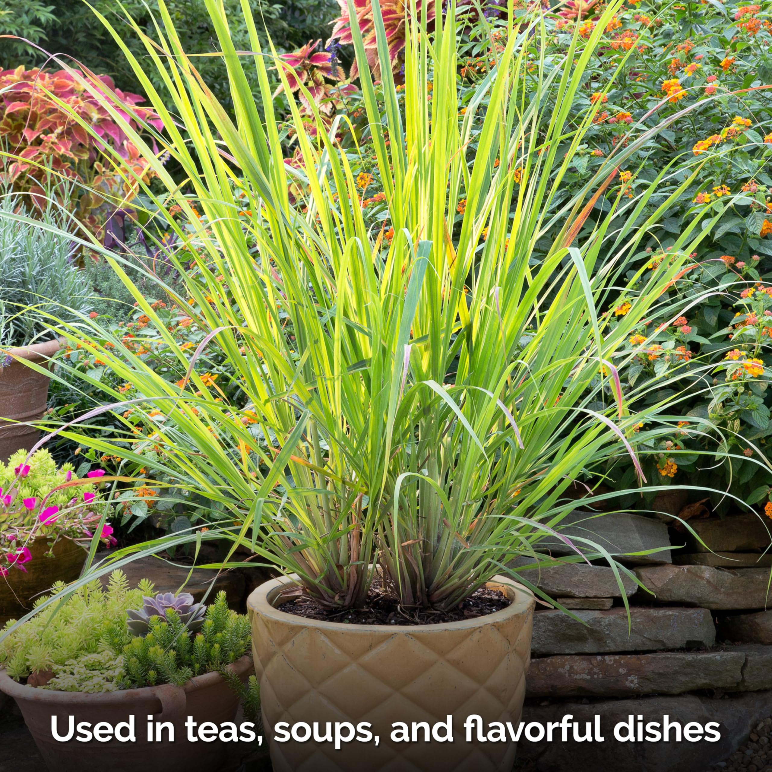Culinary Versatility: lemongrass stalk and lemongrass leaves add citrus flavor to teas, soups, curries; fresh herbs for kitchen herb planter; harvest when stalks reach 1/2 in thick and 18 in tall.