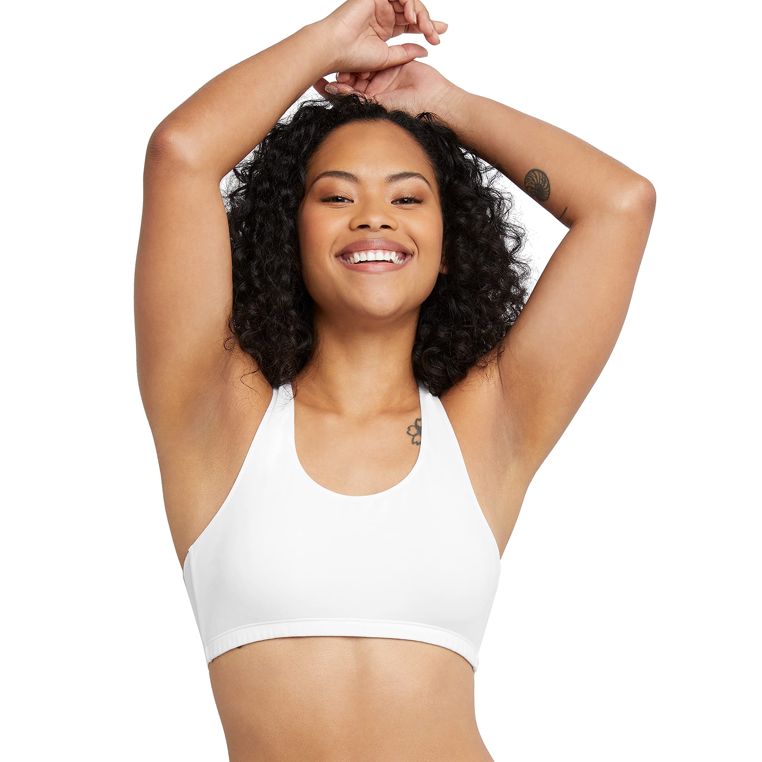 Description For versatility and comfort in a racerback bra for working out or just hanging out, look to Hanes® for this effortless bralette with endless wearing options. Offering light support for low-impact activities such as yoga, pilates, or walking, this cotton knit bralette is all about easy comfort and flexibility. This lightweight T-back bralette is made with Hanes®' ComfortFlex Fit® 4-way stretch fabric for a flexible fit that moves every way you do. It's also made with Cool Comfort® fabric that wicks away moisture to keep you cool and dry all day, during a workout or anytime. The 100% cotton knit is soft against your skin, and the scoop front and T-back with wide, no-dig straps offer smoothness under clingy clothes. Light support comes from the smooth bottom band. For layering or soloing, this comfortable cotton knit bra top will find all sorts of uses in your weekend or workout wardrobe.