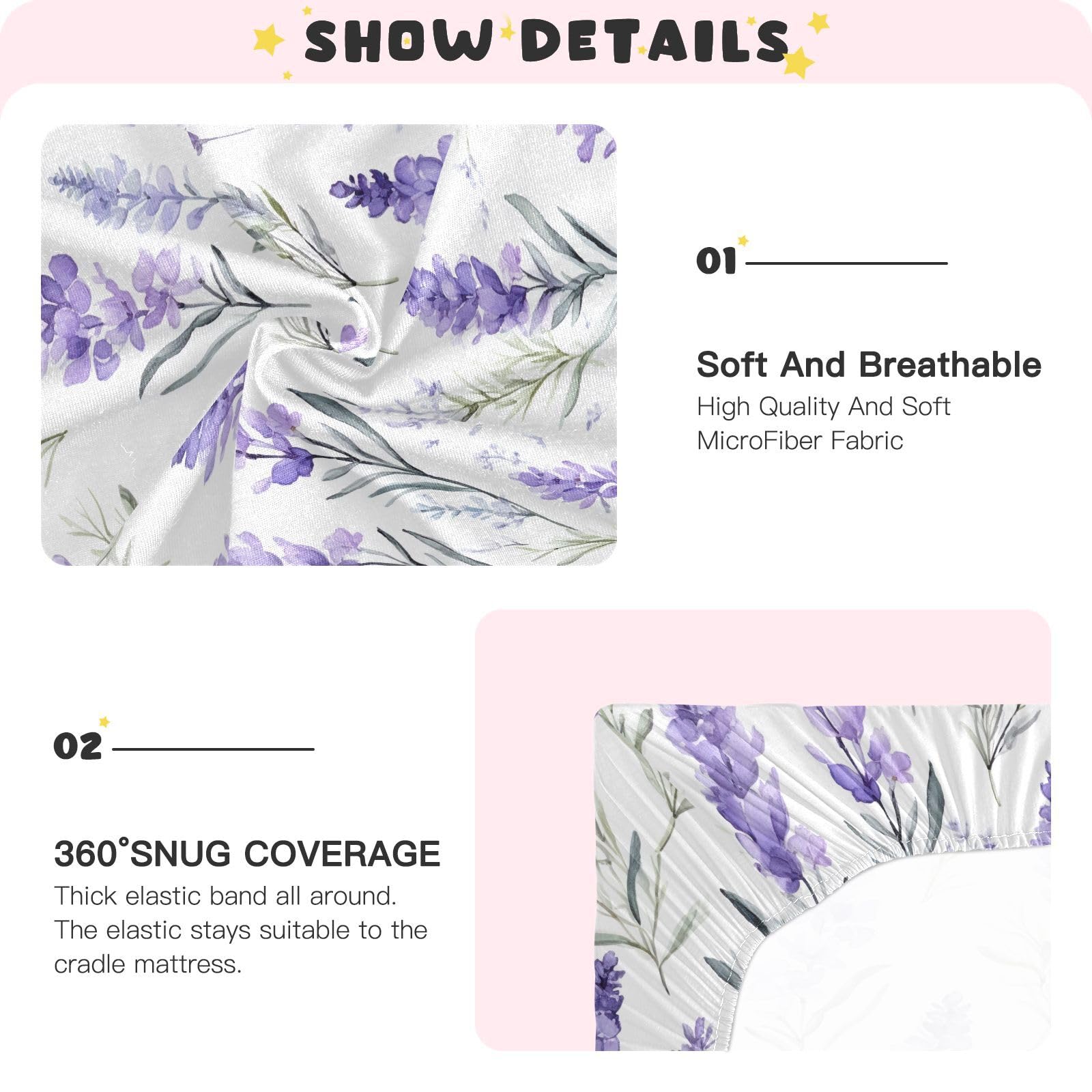 š¼ćFlexible FitćOur Baby bed cover feature a flexible, generous elastic that bring you the convenience of easy changing,while providing a tight seal.