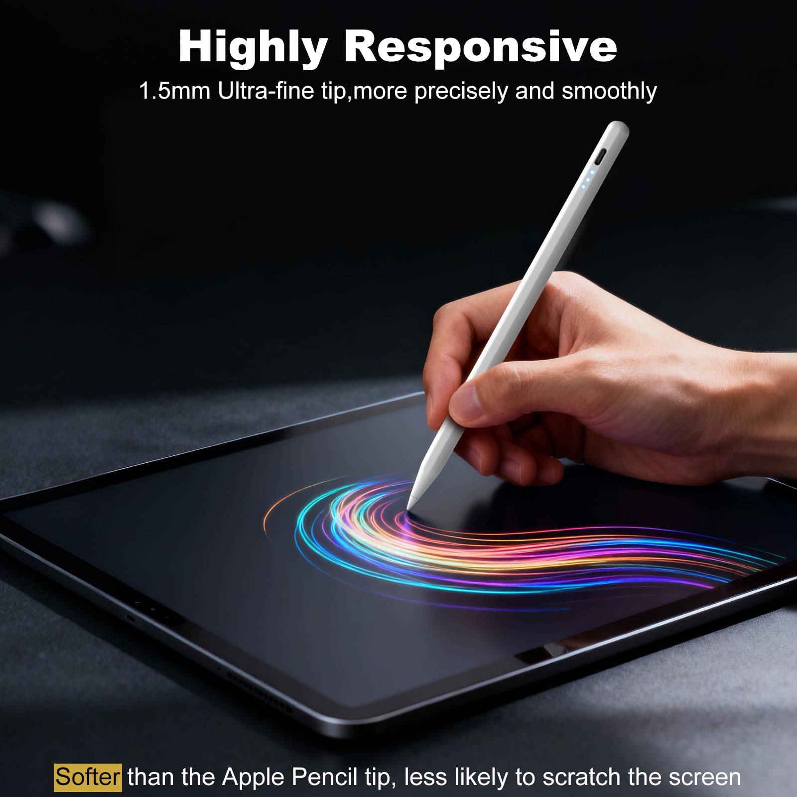 【Palm Rejection & Magnetic Attraction】No need to wear anti-friction gloves as you can rest your hand on the screen without worrying about accidental touches. The upgraded built-in magnet in the pencil for iPad offers stronger attraction than the original Apple Pencil and firmly attaches to the side of iPad, including the iPad 10 (which is a unique feature that other styluses do not offer). This enables easy portability and prevents the stylus from slipping or getting lost.