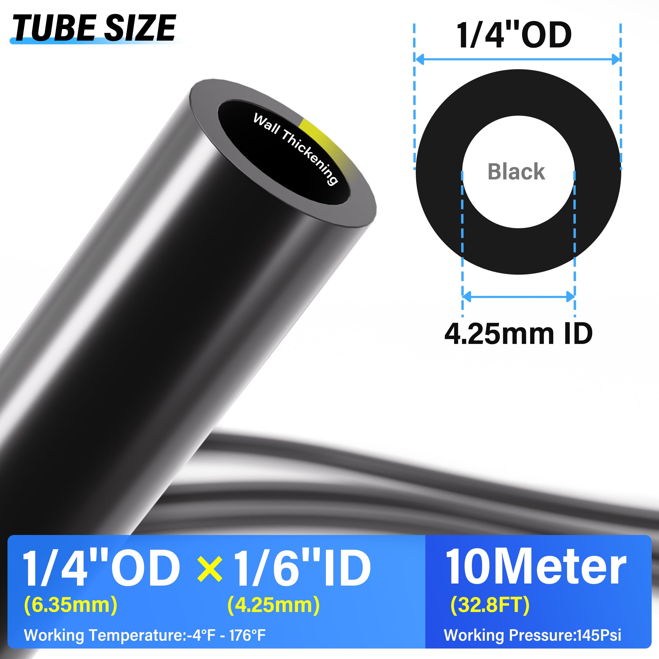 【Package Included】1 × 1/4''OD PU Tube(10Meter),2 × PE-1/4(Union Tee),2 × PV-1/4(Elbows),2 × PY-1/4(Y Spliters),2 × PU-1/4(Straight Unions),4 × PC-1/4-N2,6× PPF(1/4''OD),6× PP(1/4''OD),1× Teflon Tape,1× Tracheal Scissors